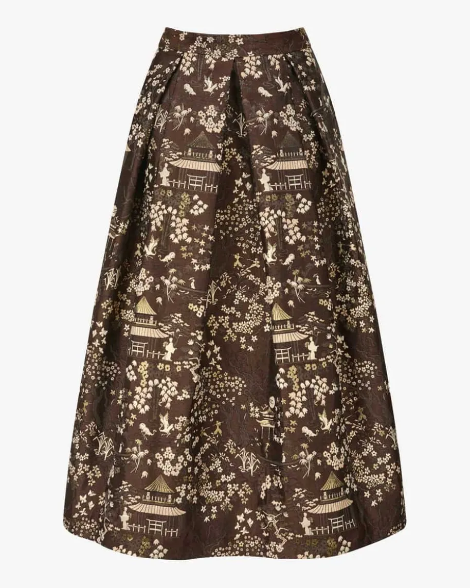 Luna Asia Rock für Damen von Lunatica Milano in Braun, Gold und Creme. LunaticaMilanosteht für handgefertigte Röcke made in Italy – extravagant, farbenfroh undvoller La-Dolce-Vita-Charme. Mit extravagantem Asia-Motiv in hochwertigerJacquard-Verarbeitung, femininer A-Linie und markanten Kellerfalten wird diesesModell zum echten Hingucker und verleiht jedem Outfit das gewisse Etwas.