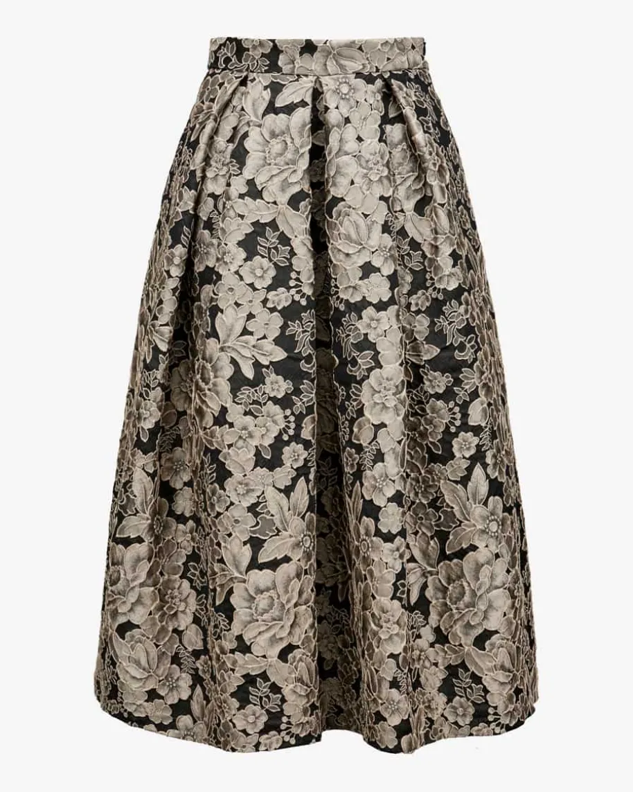 Luna Flower Rock für Damen von Lunatica Milano in Silber und Schwarz. Währenddie strukturierte Aufmachung in floralem Dessin für eine romantische Note sorgt,wird durch die ausgestellte Passform ein femininer Look kreiert – Ein modischerund zugleich eleganter Begleiter in Ihrer Garderobe.