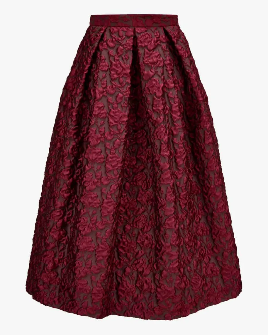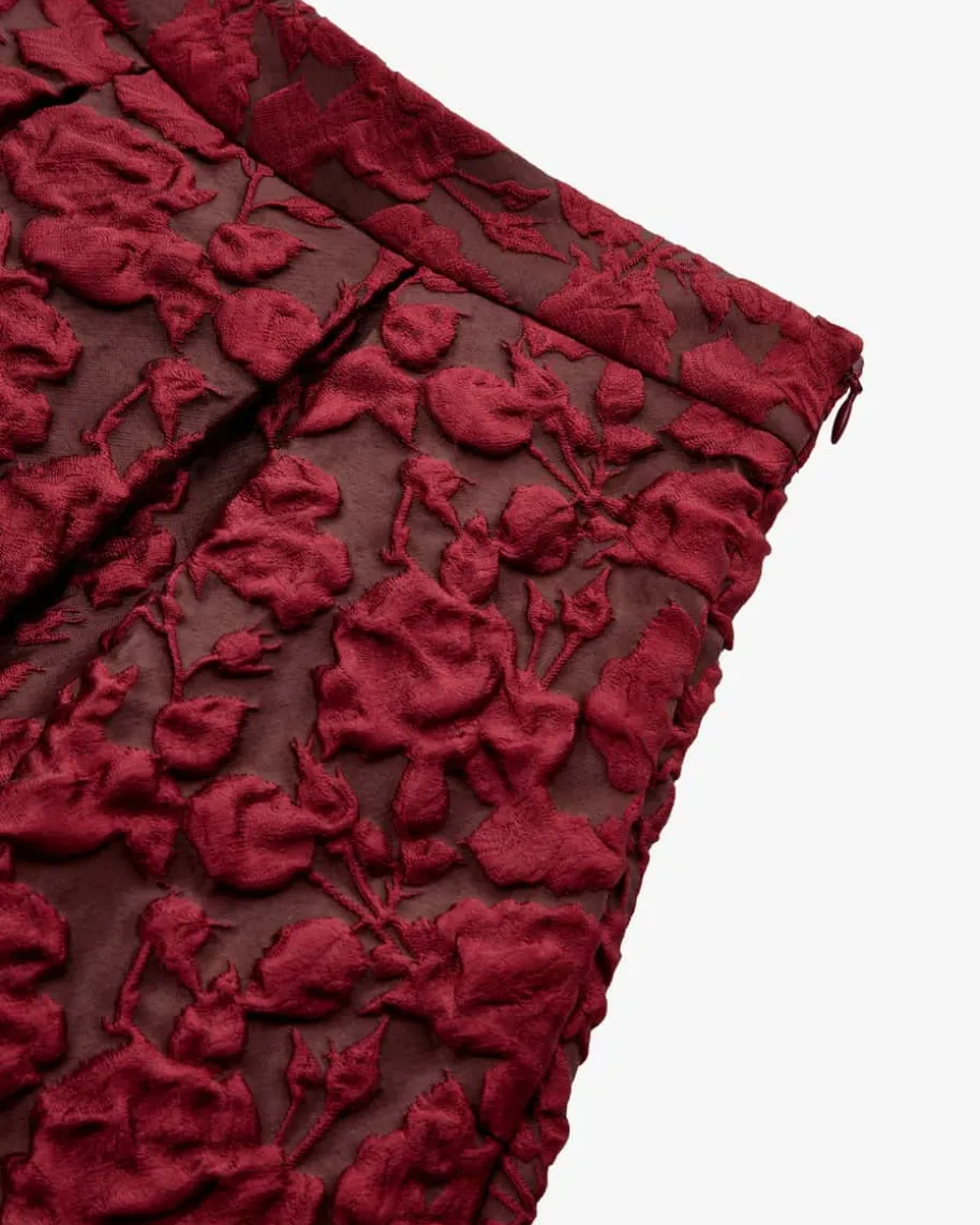 Luna Red Rock für Damen von Lunatica Milano in Rot und Dunkelrot. LunaticaMilanosteht für handgefertigte Röcke made in Italy – extravagant, farbenfroh undvoller La-Dolce-Vita-Charme. Mit changierendem, abstraktem Blumen-Dessin inhochwertiger Jacquard-Verarbeitung, femininer A-Linie und markanten Kellerfaltenwird dieses Modell zum echten Hingucker und verleiht jedem Outfit das gewisseEtwas.