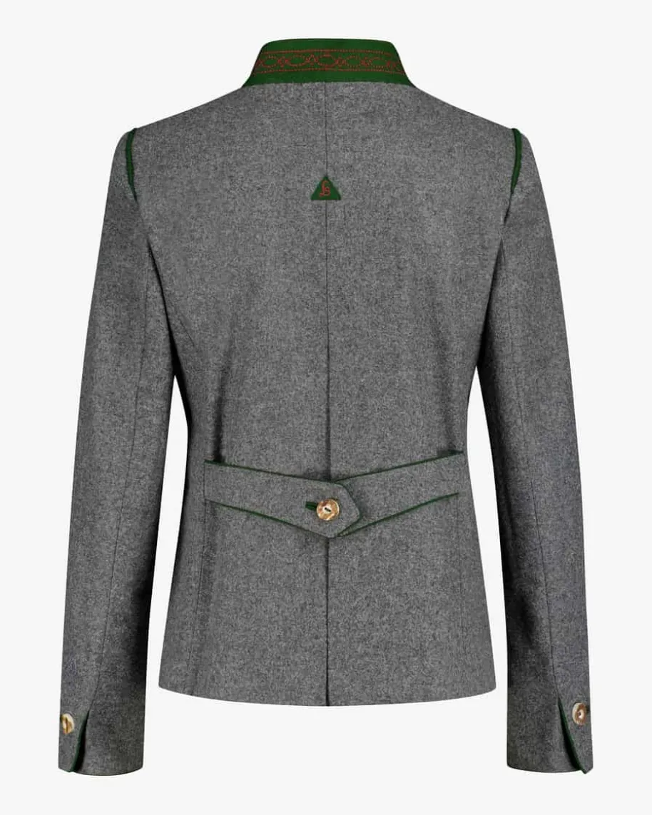Manchester Trachtenjanker für Damen von Poldi in Dunkelgrau. Das traditionelleModell besticht durch die hochwertige Schurwoll-Verarbeitung, die angenehmenTragekomfort verspricht. Kontrastierende Paspelierungen sowie die Hornknöpferunden das Gesamtbild mit rustikaler Note ab.