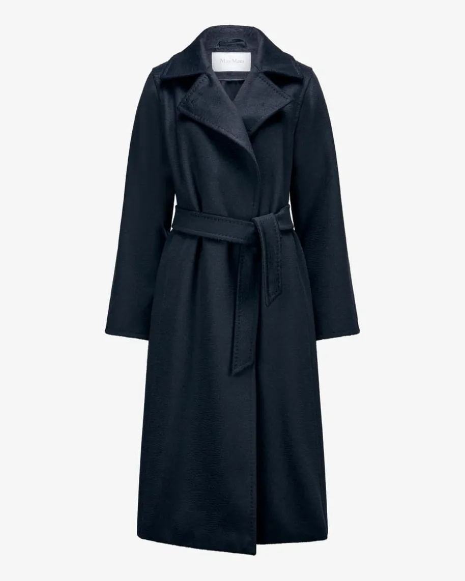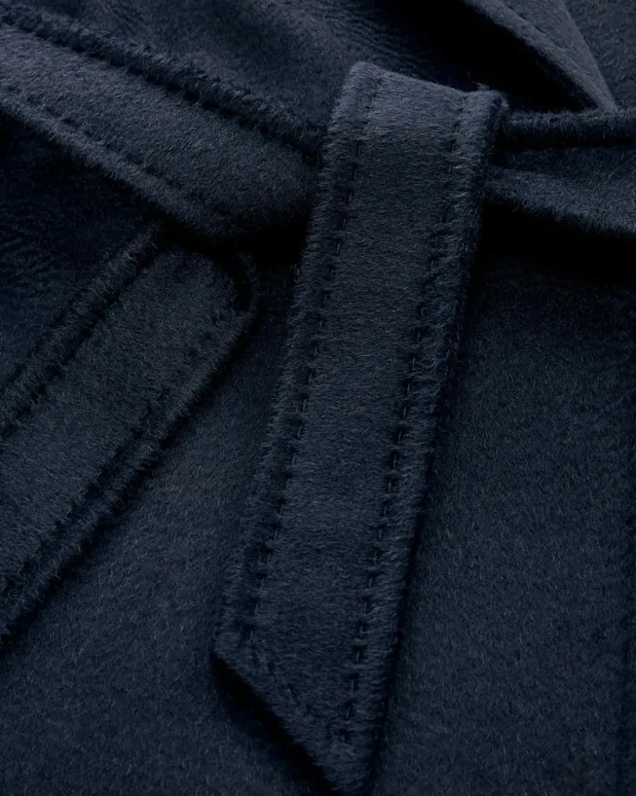 Manuela Mantel für Damen von Max Mara in Navy. Dieses Modell zeichnet sichdurch die hochwertige Kamel-Woll-Verarbeitung sowie die klassische Aufmachungaus. Zudem gehen die dezenten Ziernähte zusammen mit der changierenden Struktureine harmonische Symbiose ein.