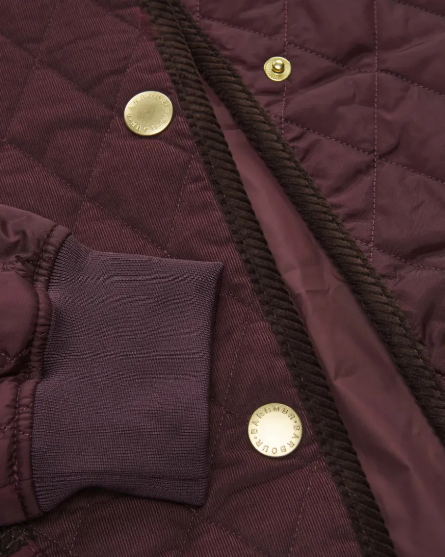 Marla Steppjacke für Damen von Barbour in Bordeaux. Das 1894 gegründetebritische Traditionshaus ist weltberühmt für gewachste Outdoorjacken mitHeritage-Flair. Das legere Modell punktet in modischer Aufmachung dank desMaterial- und Struktur-Mix, während die sportiven Ärmelbündchen und dasSteppmuster eine Casual Note verleihen.