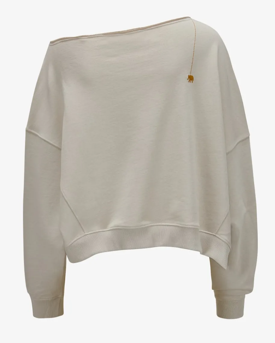 Marti Sweatshirt für Damen von Love Joy Victory in Graugrün. Das Modellüberzeugt mit legerer Passform, die durch die extravagante Asymmetrie sowie dieFledermaus-Ärmel modisch in Szene gesetzt wird. Der U-Boot-Ausschnitt mitoffenem Saum rundet den Look harmonisch ab.