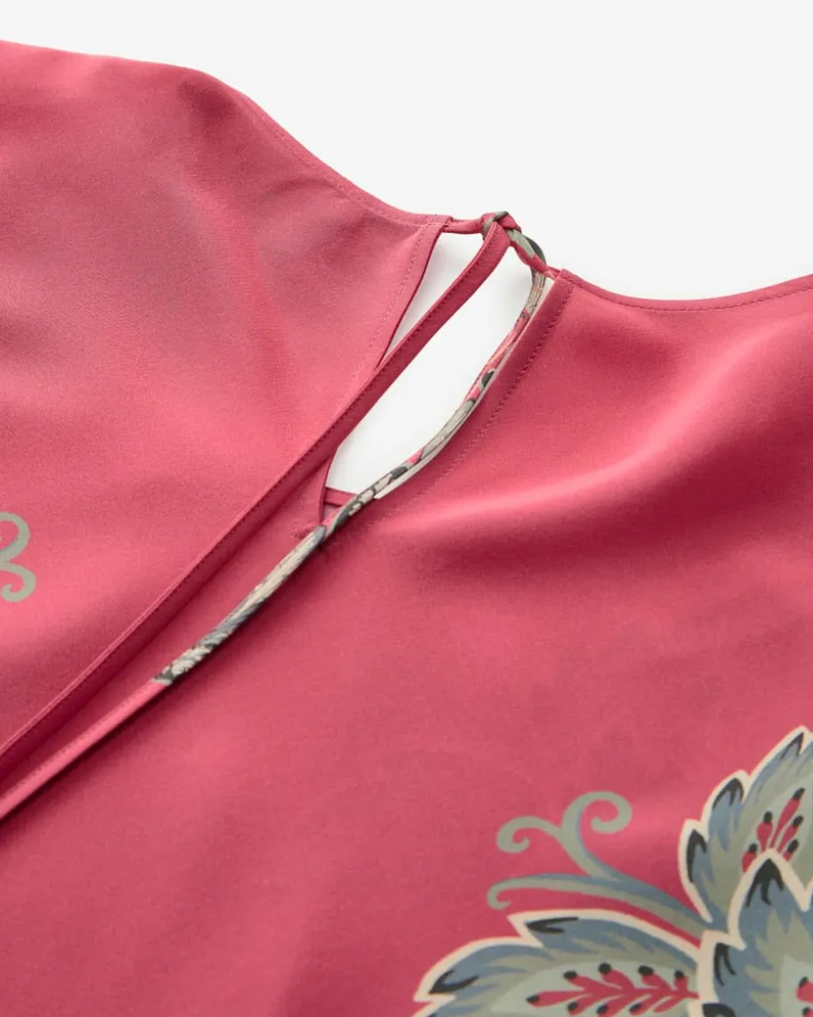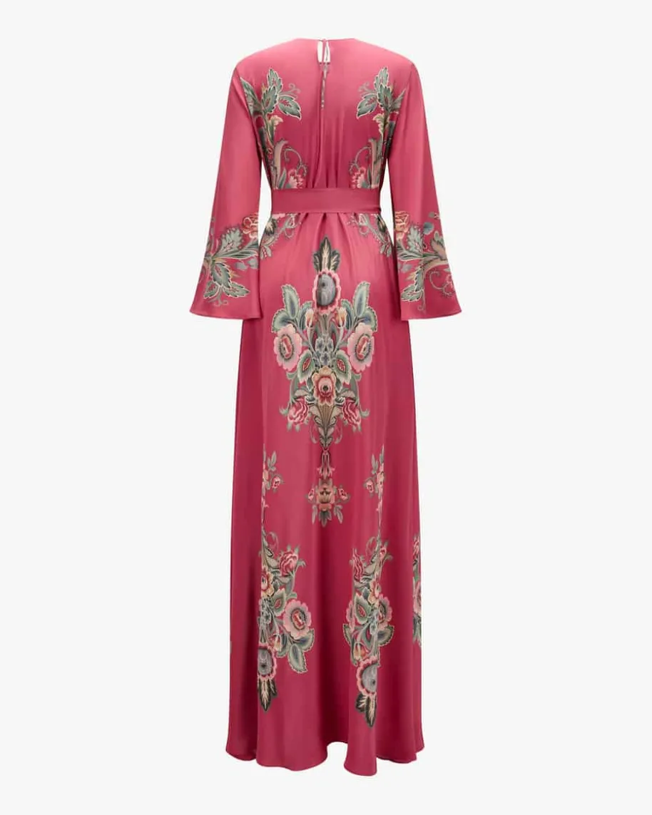 Maxi-Seidenkleid für Damen von Etro in Himbeere und Bunt. Das Modell präsentiertsich dank des labeltypischen Allover-Dessins mit floralem Motiv in modischerAufmachung, während die hochwertige Seiden-Qualität ein angenehmes Tragegefühlverspricht.