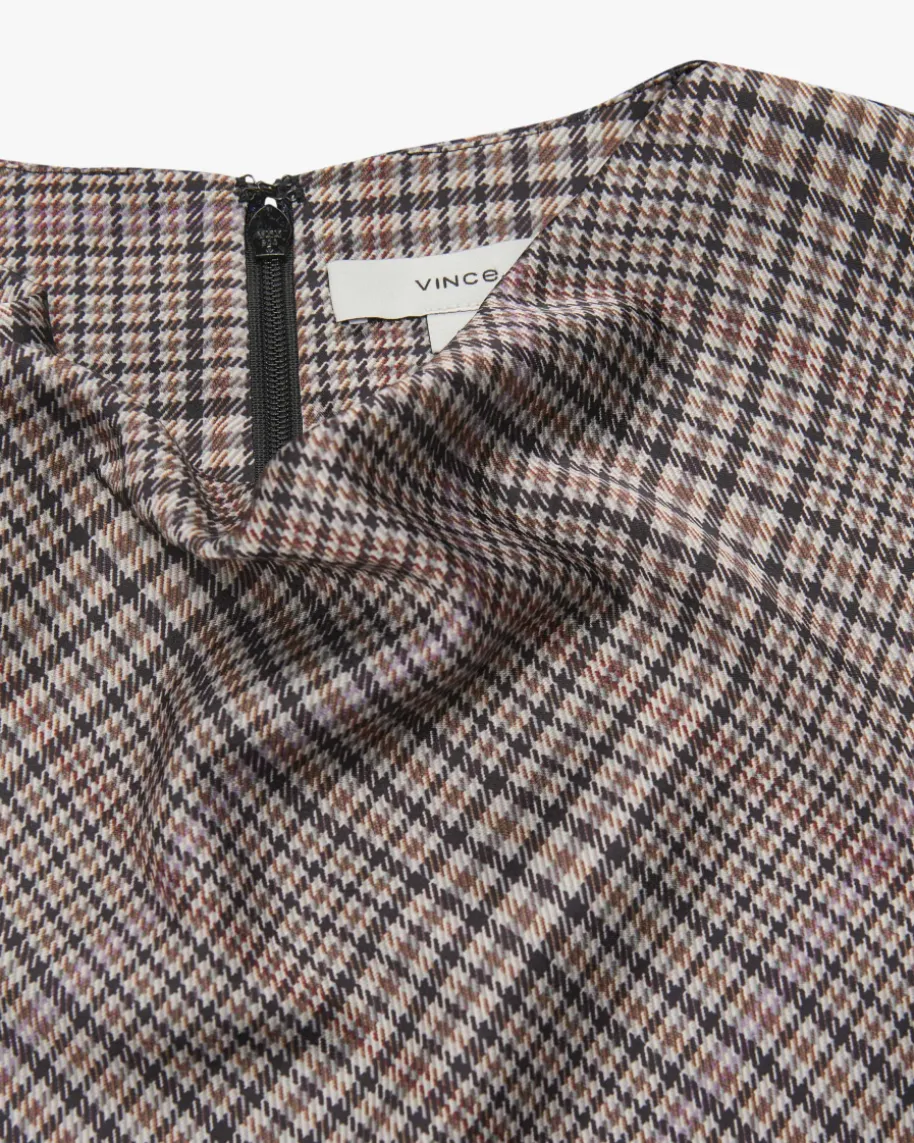Maxikleid für Damen von Vince in Cognac, Schwarz und Beige. Das kalifornischeLabel steht für relaxed Luxury – edle Basics, weiche Stoffe und klare Schnitte.Dieses Modell in angenehmer Haptik überzeugt in fließender Aufmachung, währendder Wasserfall-Ausschnitt und das Karo-Dessin einen besonderen Favoritenkreiert.