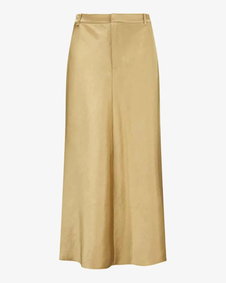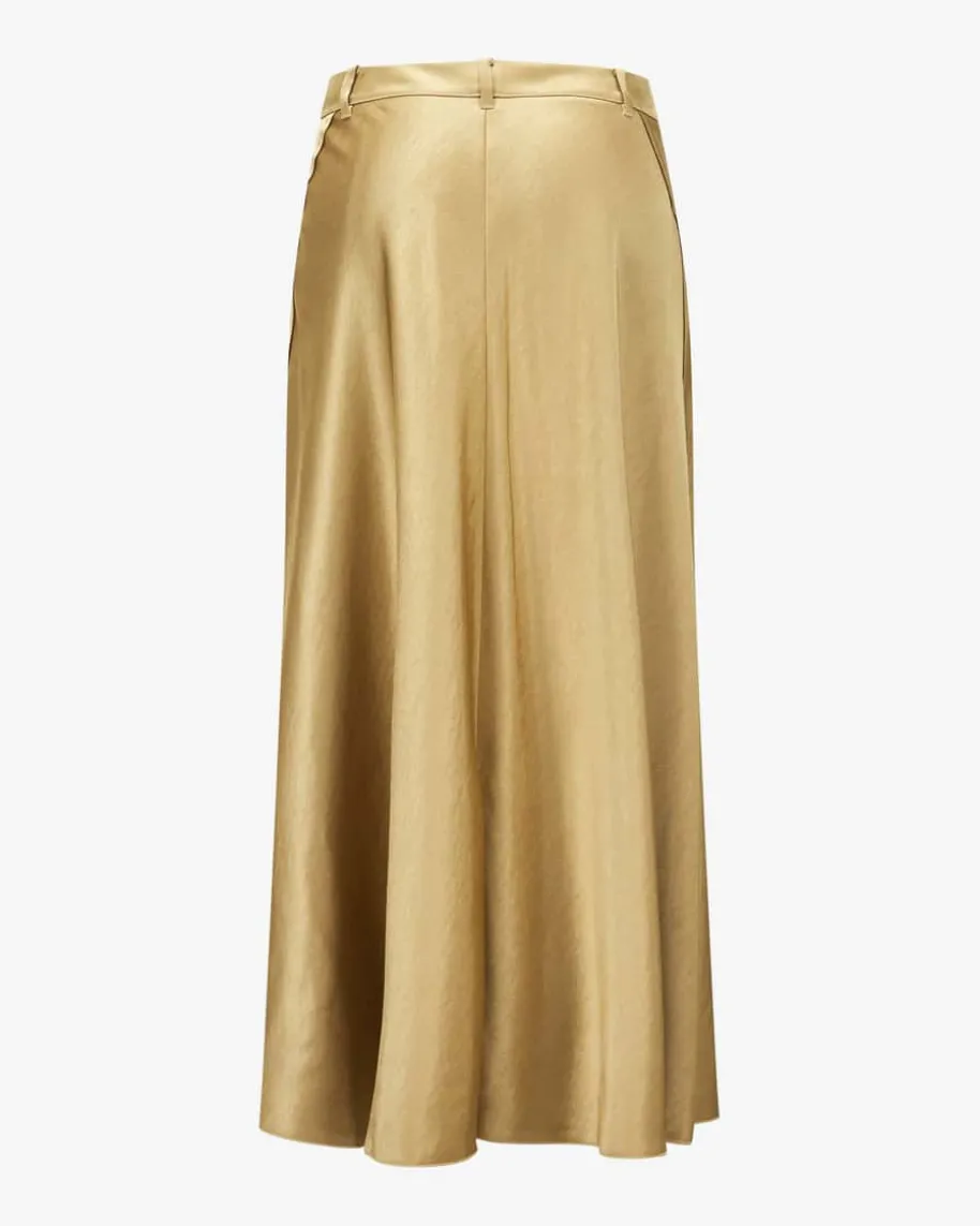 Maxirock für Damen von Vince in Gold. Die changierende Satin-Optik des Modellskreiert zusammen mit der ausgestellten Passform einen edlen Look, während derklassische Zip-Fly-Verschluss sowie der Gehschlitz den letzten Schliffverleihen.