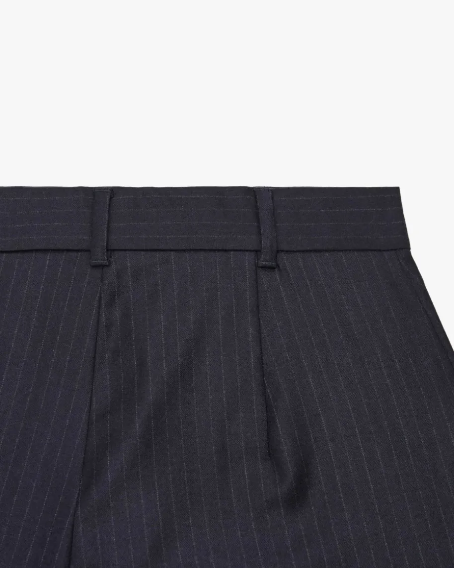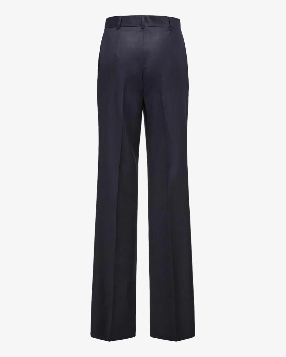 Medium Schurwollhose für Damen von Max Mara Studio in Navy. Weiblich, modern,tragbar – Max Maras femininere Linie. Auch dieses Modell in hochwertigerSchurwolle überzeugt mit weicher Haptik und angenehmen Tragemomenten, währenddas gerade Bein und Nadelstreifen-Dessin einen zeitlosen Begleiter für feminineOffice-Styles schaffen.