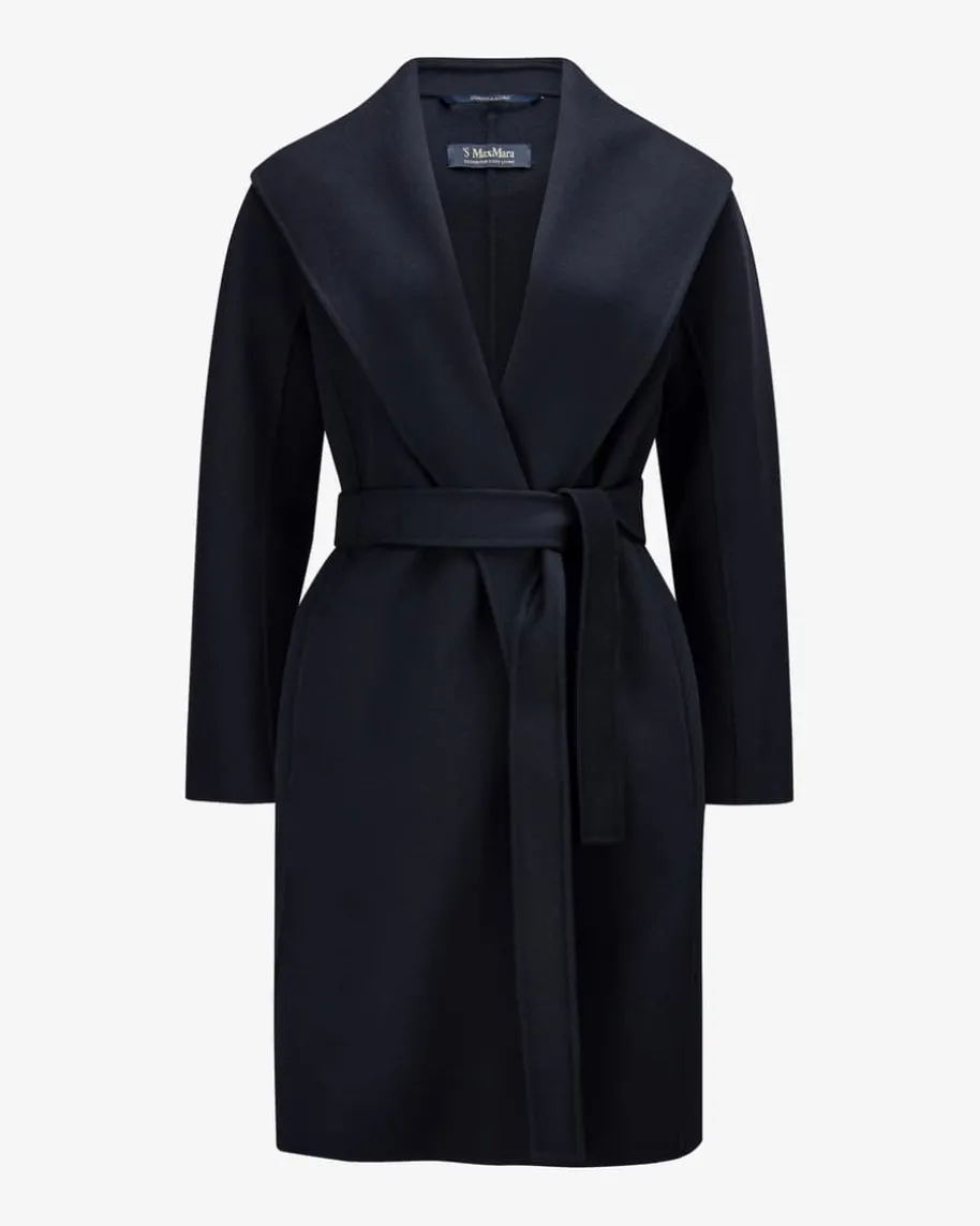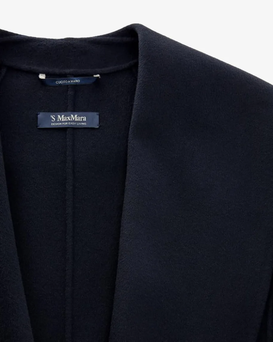 Messie Wollmantel für Damen von ‚S Max Mara in Navy. Dieses ungefütterte Modellpräsentiert sich in besonders weicher Woll-Qualität und markantem Schalkragen,wodurch der Kurzmantel zu einem hochwertigen Allzeit-Favoriten für vielseitigeLooks avanciert.