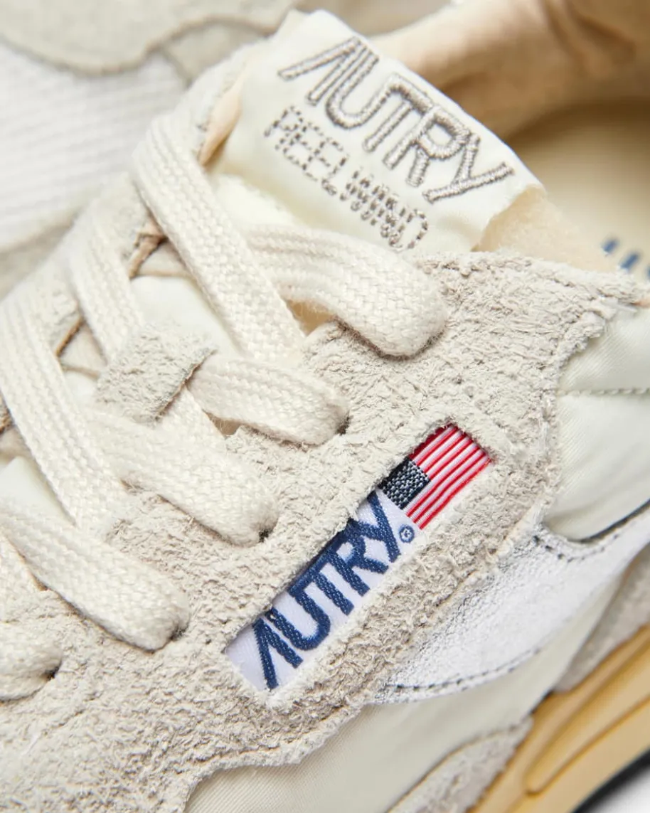 Metallic Reelwind Low Sneaker für Damen von Autry in Hellgrau, Weiß und Silber.Das 1982 in Dallas gegründete Label etablierte sich zu einem der beliebtestenSneaker-Marken der 1980er Jahre und feierte 2019 sein Comeback. Für diesesModell ließ sich die Marke von dem dynamischen Design der Runner inspirieren undverbindet fließend die Innovation von Performance-Schuhen mit der Ästhetik der80er Jahre. Der aus genarbtem Leder und glattem Textil gefertigte Reelwind isteine außergewöhnliche Kombination aus Stil und Funktionalität.