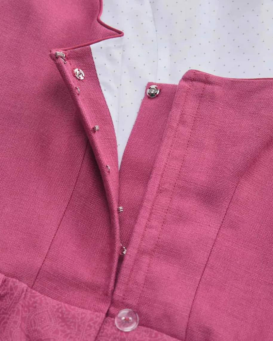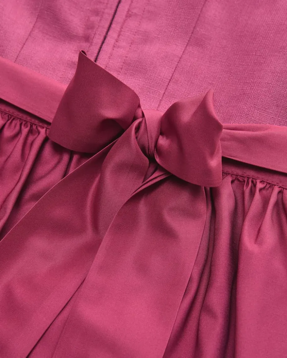 Midi-Wiesndirndl mit Schürze für Damen von LODENFREY München 1842 in Altrosa undBeere. Dank der Verwendung von hochwertiger Leinen-Qualität im Mieder und einemfeinen Ornament-Muster im Baumwoll-Rock wird ein traditioneller Favorit mitminimalistischem Charme kreiert. Die changierende Schürze mit Seide rundet dasTrachten-Gesamtbild harmonisch ab.