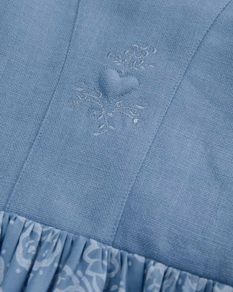 Midi-Wiesndirndl mit Schürze für Damen von LODENFREY in Rauchblau. JahrelangeErfahrung, hochwertige Verarbeitung und viel Liebe zum Detail zeichnen dieexklusiven Kreationen aus. Das Mieder in traditioneller Leinen-Qualität wirddank des gereihten Rocks mit dem floralen Ornamente-Muster stilvoll ergänzt,während die changierende Schürze das hochwertige Gesamtbild gekonnt vollendet.Gleichzeitig verleiht eine raffinierte Herz-Stickerei auf der Rückseite desMieders Ihrem Trachten-Look das gewisse Etwas.