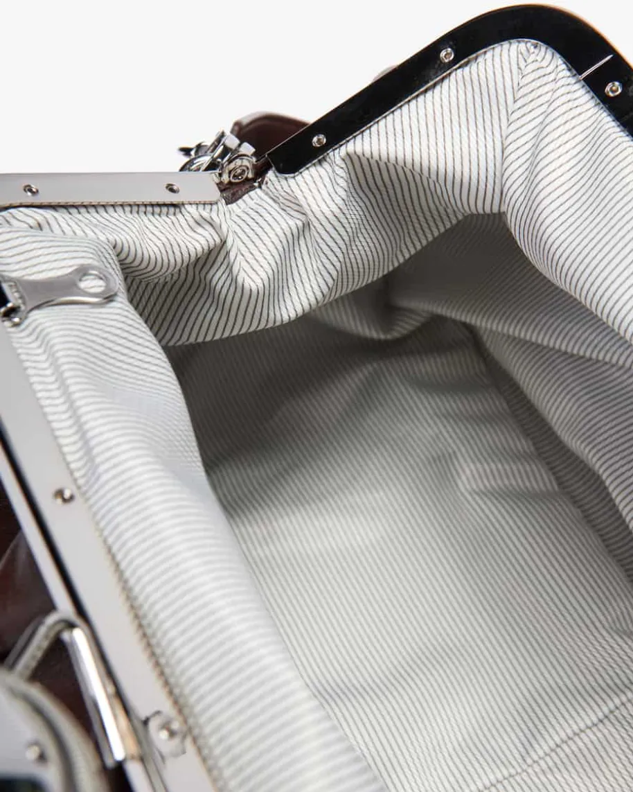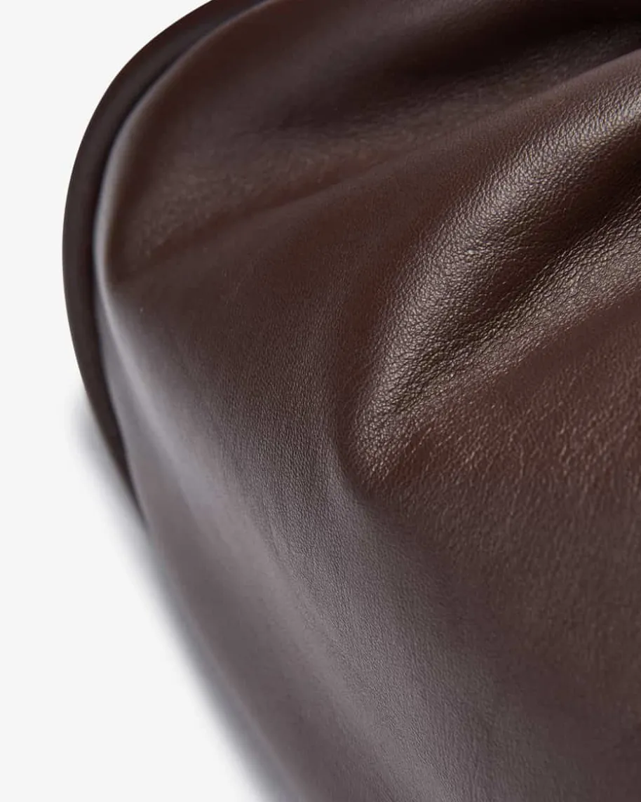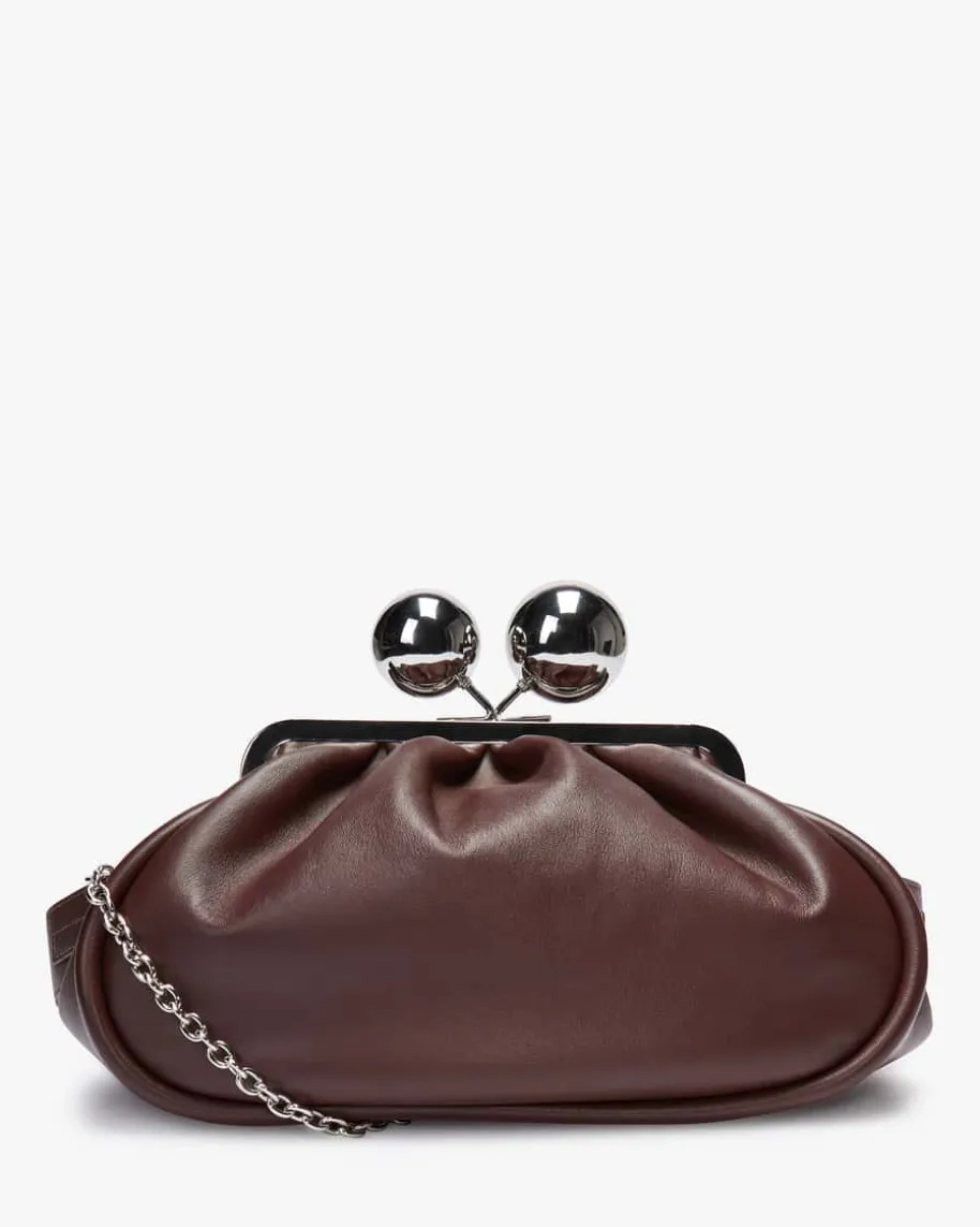 Milvanew Umhängetasche für Damen von Weekend Max Mara inDunkelbraunund Silber. Diemittelgroße Pasticcino Bag aus glänzendem Nappaleder isteine Super-Clutch, diedeinem Alltagslook eine persönliche und faszinierende Noteverleiht. DerMetallverschluss mit großen Weekend Max Mara Kugeln setztzudemcharakteristische Akzente