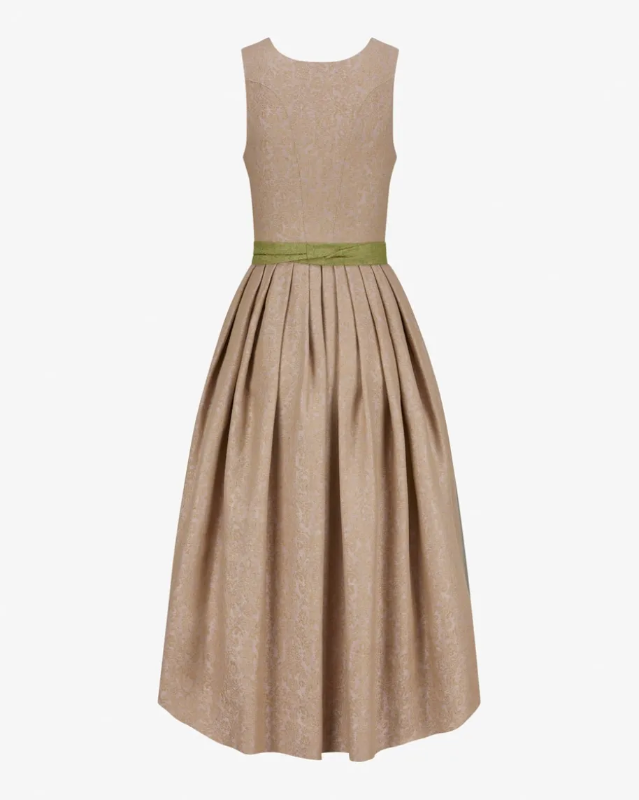 Monika Leinendirndl lang mit Schürze von Gottseidank in Altrosa und Moosgrün.Das Modell besticht dank des Jaquard-Designs als traditioneller Favorit infemininer Aufmachung, während klassische Details einen stilvollen Favoriten fürfestliche Anlässe kreieren. Die hochwertige Leinen-Qualität punktet zugleich miteiner angenehmen Haptik.
