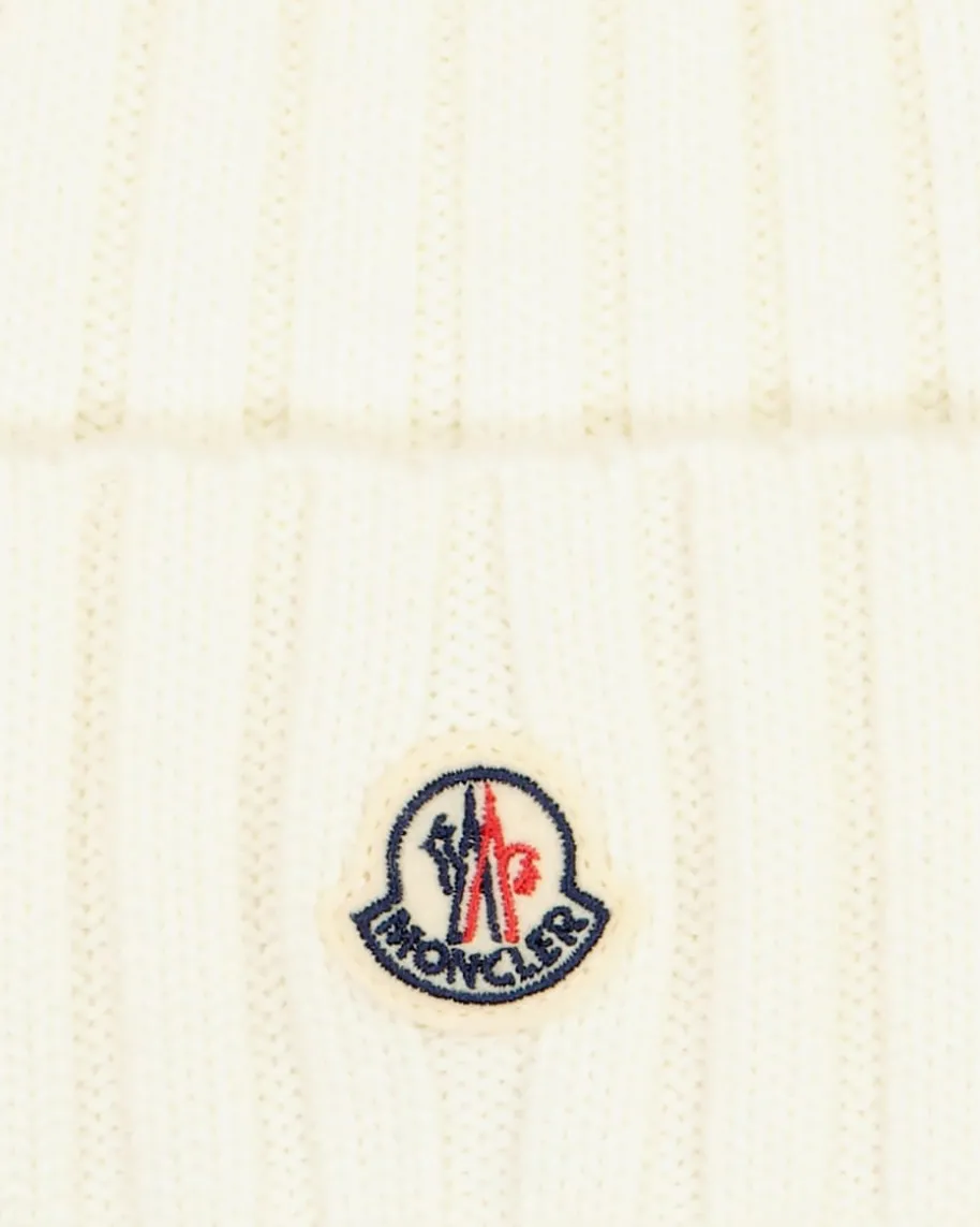 Mütze für Damen von Moncler in Creme. Das Modell aus angenehmer Schurwoll-Qualität avanciert durch sein zeitloses Design und softes Tragegefühl zumperfekten Begleiter für den Winter. Die labeltypische Logo-Applikation schafftes zudem, modische Akzente zu setzen.