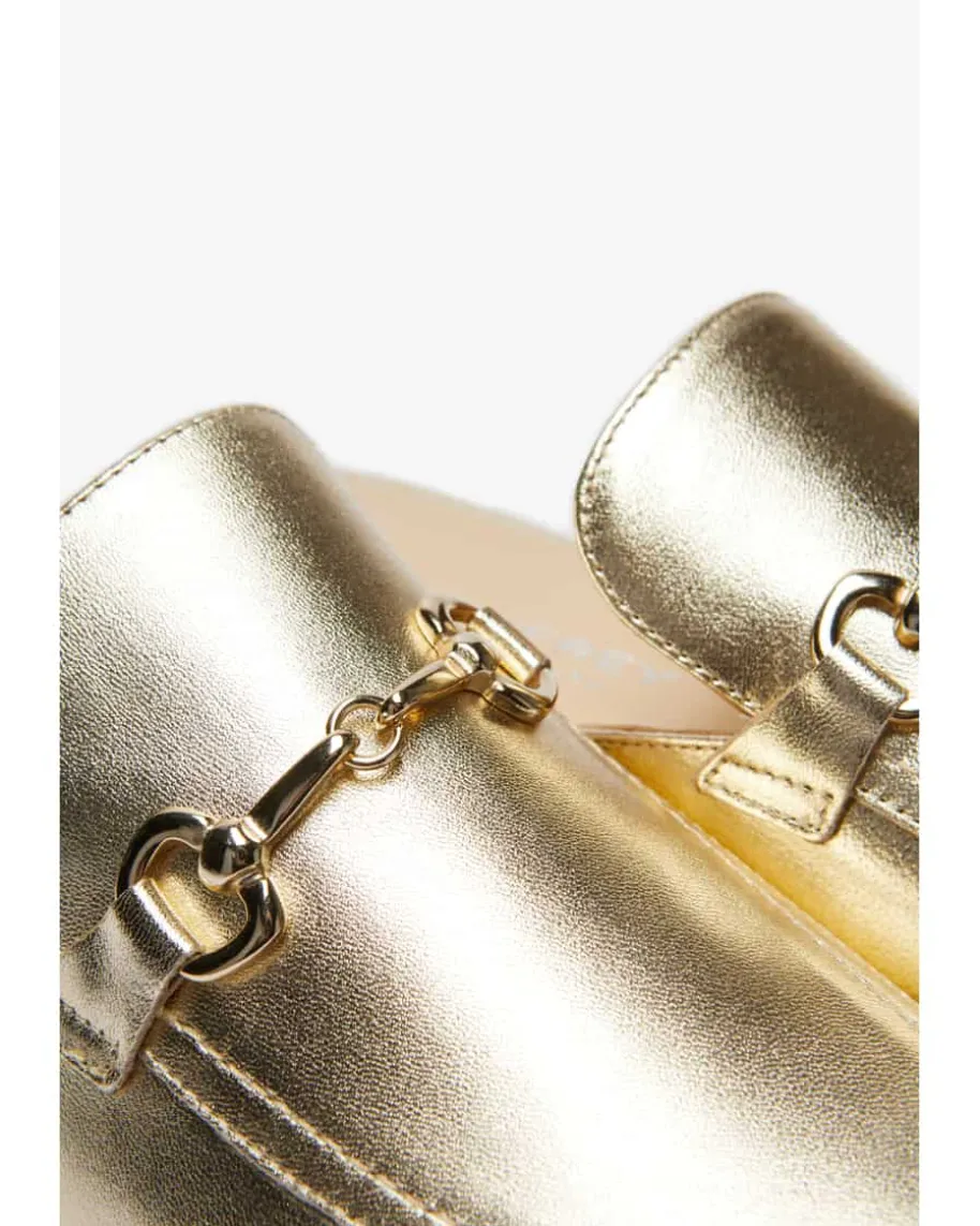 Mules für Damen von LODENFREY in Gold. Das Modell zeichnet sich durch diehochwertige Leder-Qualität in Metallic-Optik sowie den dekorativen Horsebit-Riegel aus, wodurch ein stilvoller Begleiter für diverse Anlässe entsteht.