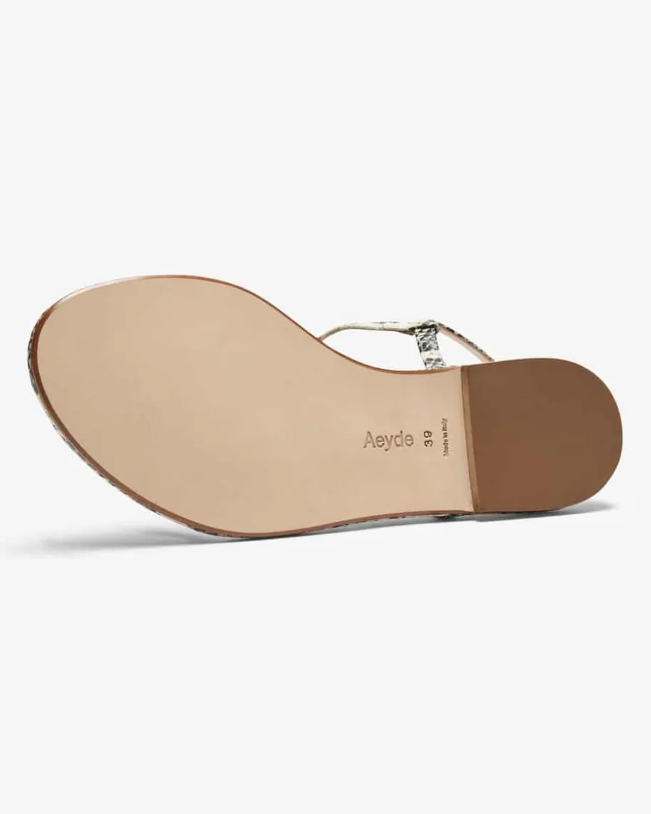 Nettie Snake Sandalen für Damen von Aeyde in Creme und Schwarz. Das Modell aushochwertigem Leder wird durch die extravagante Schlangenleder-Optik und diezarten Riemen gekonnt in Szene gesetzt. Ein stilvoller Begleiter für sommerlicheLooks.
