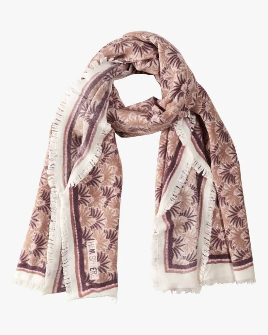 Nib Cashmere-Schal für Damen von Hemisphere in Beige, Violett und Creme. DasModell aus hochwertigem Cashmere-Mix punktet mit einem weichen Griff, währenddas florale Allover-Dessin ein stilvolles Accessoire kreiert.