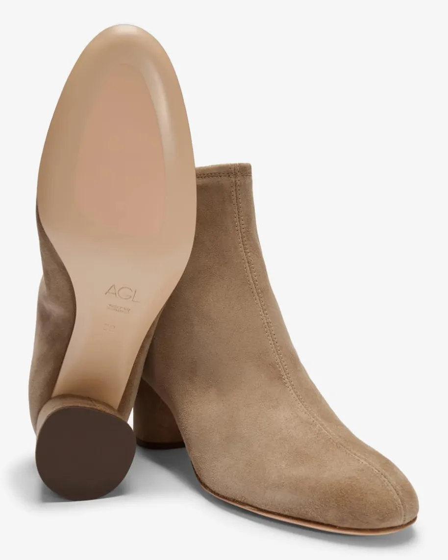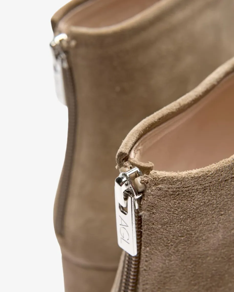Olga Stiefelette für Damen von AGL in Taupe. Während die hochwertigeVeloursleder-Qualität elegante Akzente setzt, avanciert dieses Modell dankklassischem Design zum zeitlosen Begleiter in der Übergangszeit.
