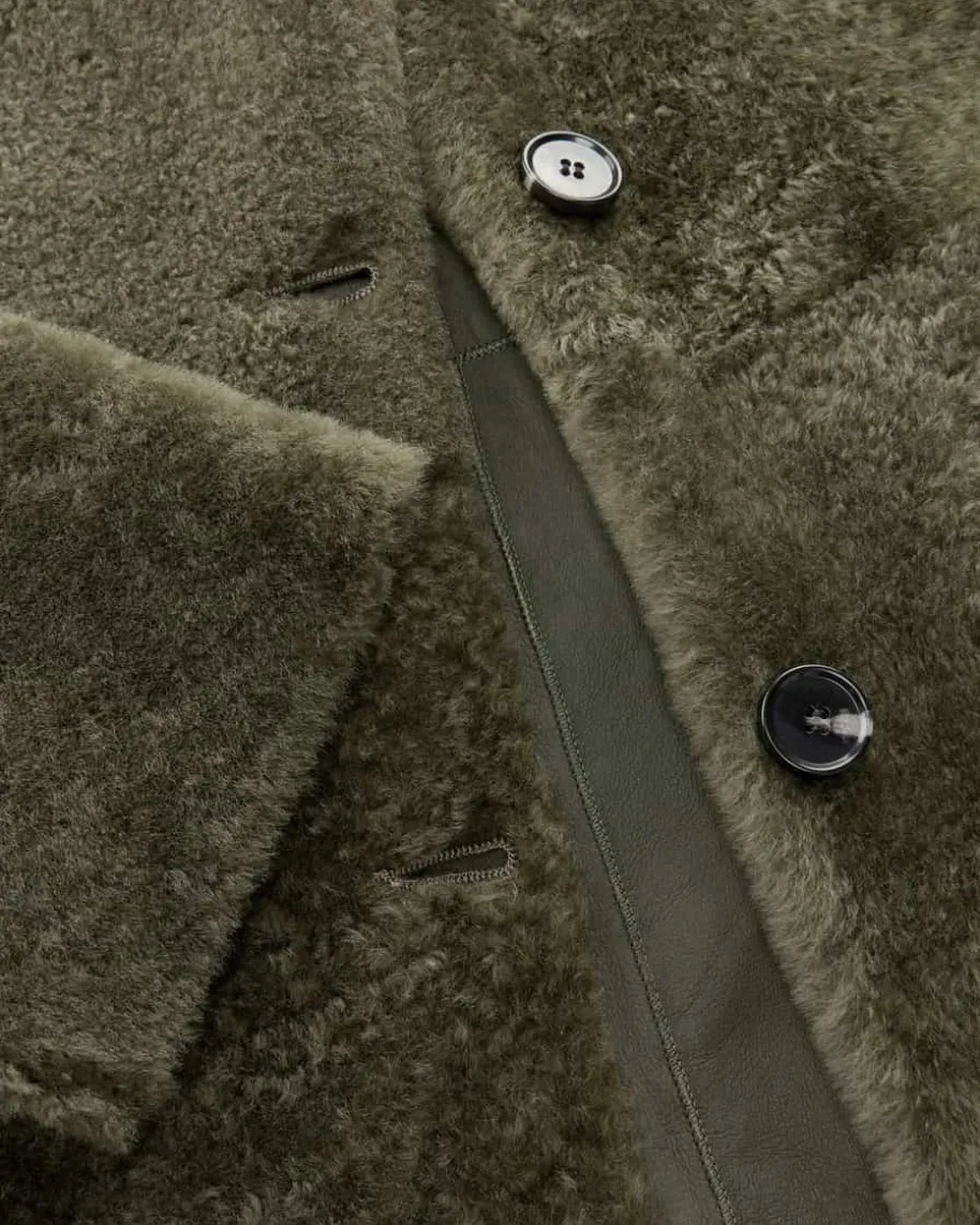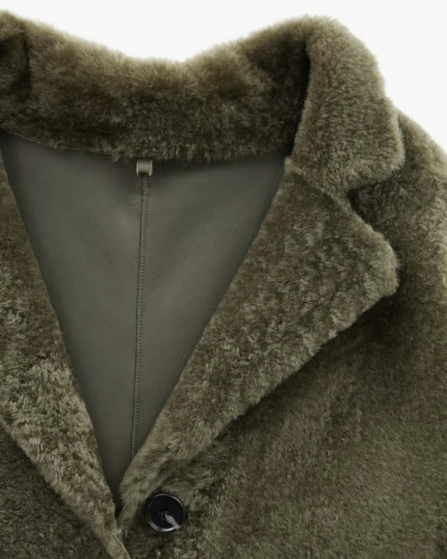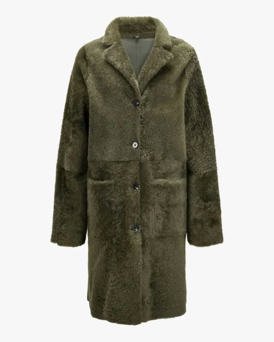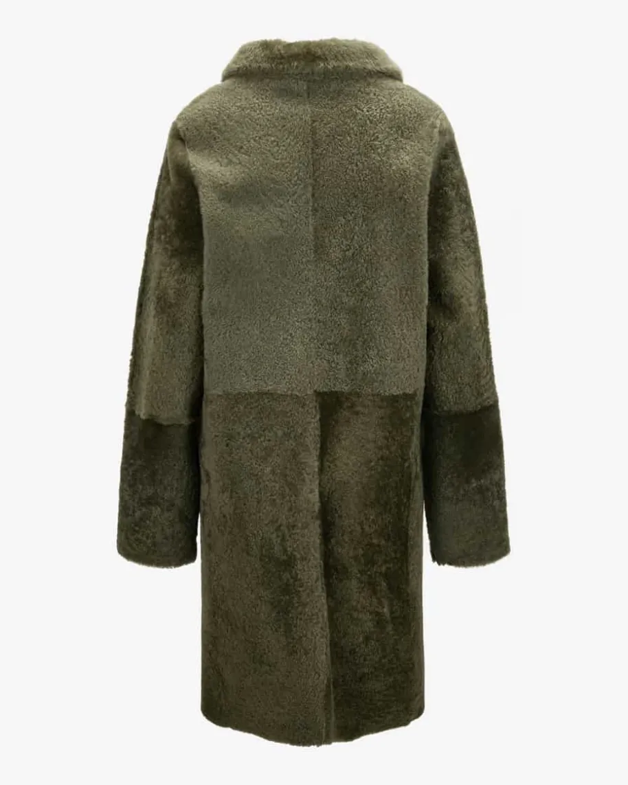 Olimpia Wende-Fellmantel für Damen von Nove in Khaki. Das Modell begeistert mitder praktischen Wende-Funktion. Während die weiche Schaffell-Seite mitangenehmer Haptik punktet, verleiht die Glattleder-Seite dem Gesamtbild eineedle Note – Ein vielseitiger Begleiter für modische Looks.