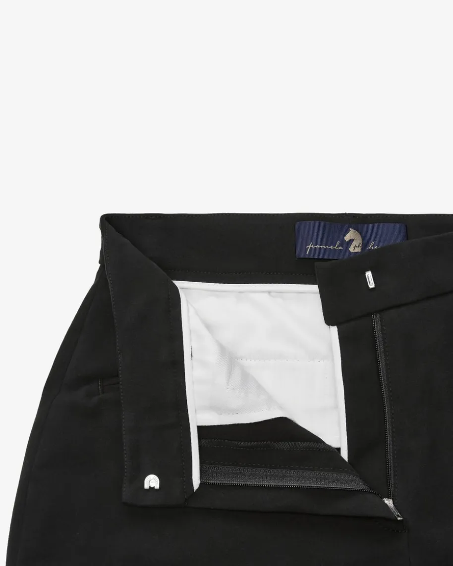 Pages 7/8-Reiterhose für Damen von Pamela Henson in Schwarz. Bekannt für ihrehochwertigen Hosen mit perfekter Passform – casual und elegant zugleich. Auchdieses Modell avanciert dank der elastischen Material-Qualität zum einembesonderen Begleiter der in typischer Silhouette einen femininen Begleiter beimAusflug aufs Gestüt kreiert.