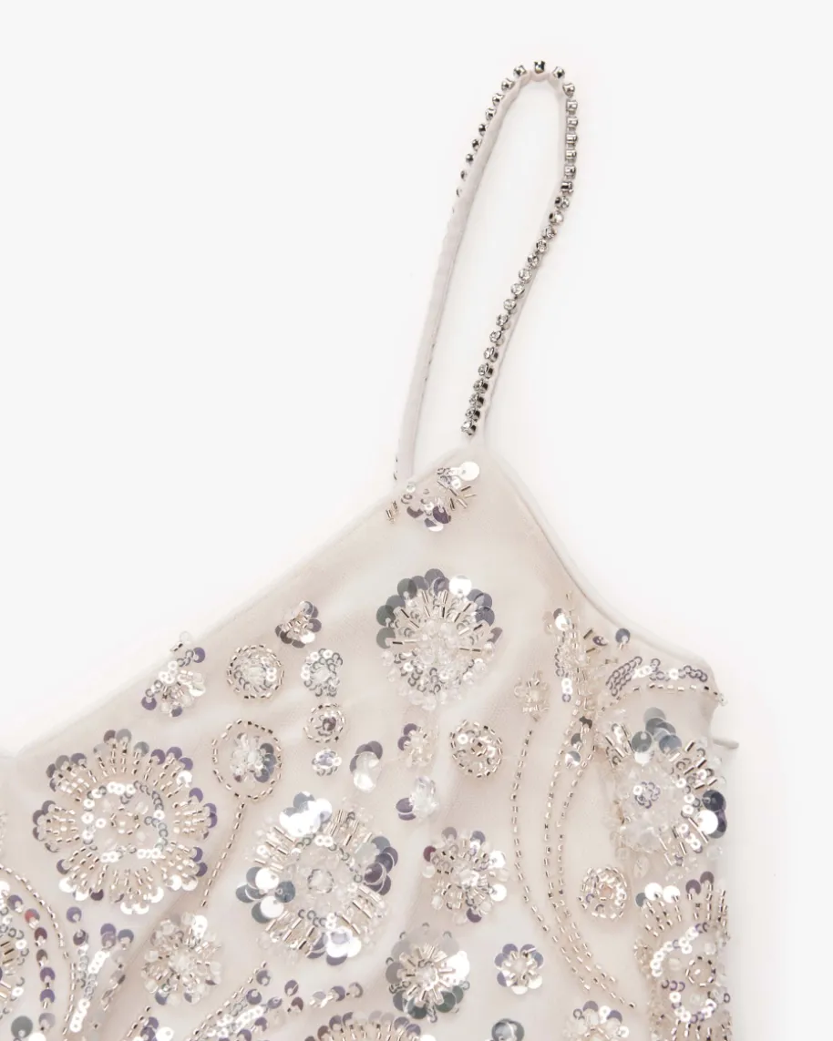 Paillettenkleid für Damen von Self-Portrait in Silber. Das Londoner Label stehtfür moderne Cocktailkleider mit Spitze, Cut-Outs und femininerDetailverliebtheit. Auch dieses luxuriöse Modell präsentiert sich mit schmalerSilhouette und changierender Pailletten-Verarbeitung in floraler Optik – einedles Design für extravagante Abend-Looks.