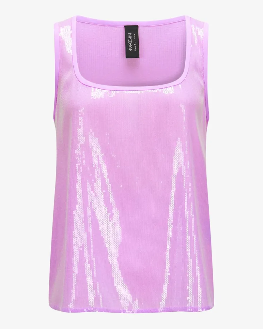 Paillettentop für Damen von Marc Cain in Lavendel. Das Modell präsentiert sichmitchangierender Pailletten-Qualität, die für einen changierenden Look sorgt – Einmodischer Begleiter für Hingucker-Styles.