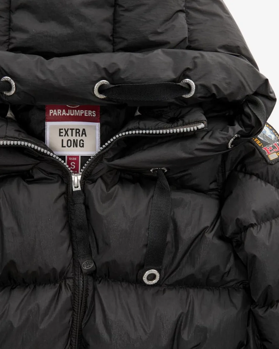 Panda Daunenmantel für Damen von Parajumpers in Schwarz. Inspiriert von denmutigen Parajumpers, die unter extremen Umständen Rettungsoperationen undBergungen ausführen müssen, entstand die Philosophie des italienischen LabelsOutdoor-Mode zu entwerfen, die robust und zeitlos, aber auch modern und stilvollist. Dieses taillierte Modell präsentiert sich in perfekter Kombination ausFunktionalität mit wasserfesten Eigenschaften und sportiven Design. DiesesModell überzeugt mit zeitlosem Steppmuster und sportivem Look, während diehochwertige Daunen-Füllung optimale Wärmeisolierung verspricht.
