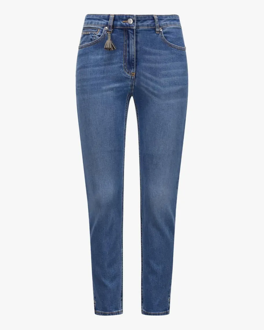 Phcing 7/8-Jeans für Damen von Pamela Henson in Blau. Hochwertige Verarbeitungund modisches Design zeichnen die Modelle des Damenlabels aus. Auch dieseselastische Modell besticht dank leicht verkürztem Bein mit Seitenschlitzen infemininer Aufmachung, während der Washed Effekt einen modischen Look garantiert.