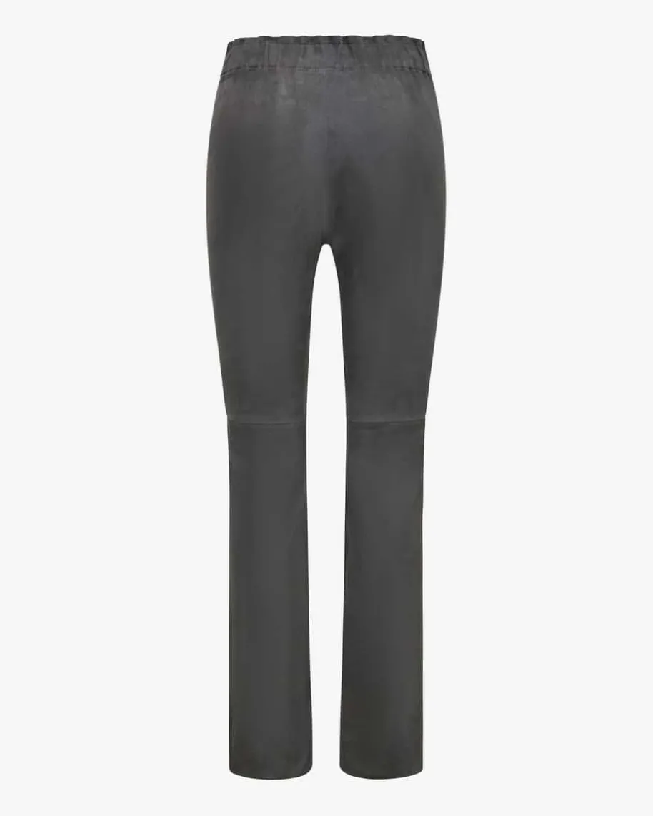 Philine Velo Lederhose für Damen von Iris von Arnim in Blaugrau. DasModell in hochwertigem Lammleder überzeugt mit angenehmen Tragemomenten dank derelastischen Eigenschaften, während die klassischen Details und die Velours-Optikdas Gesamtbild harmonisch abrunden.
