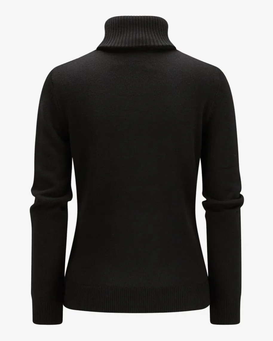 Piste Rollkragenpullover für Damen von Perfect Moment in Schwarz und Weiß.Während die hochwertige Merinowolle für einen besonders weichen Griff sorgt,kreiert das zeitlose Design mit kontrastierender Intarsie einen vielseitigkombinierbaren Strick-Liebling für stilvolle Winter- oder Ski-Looks.