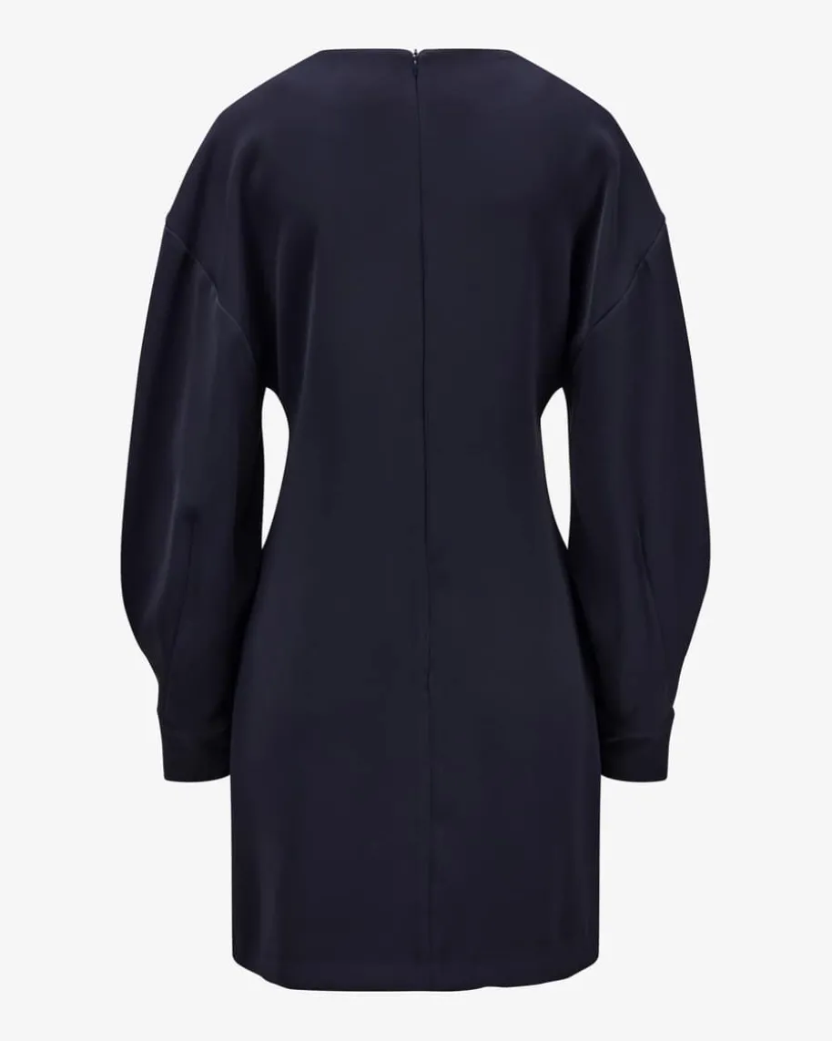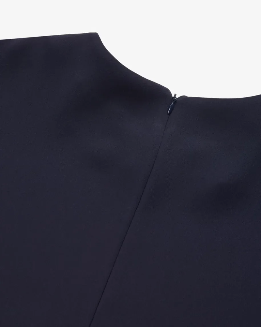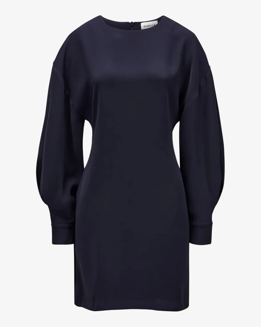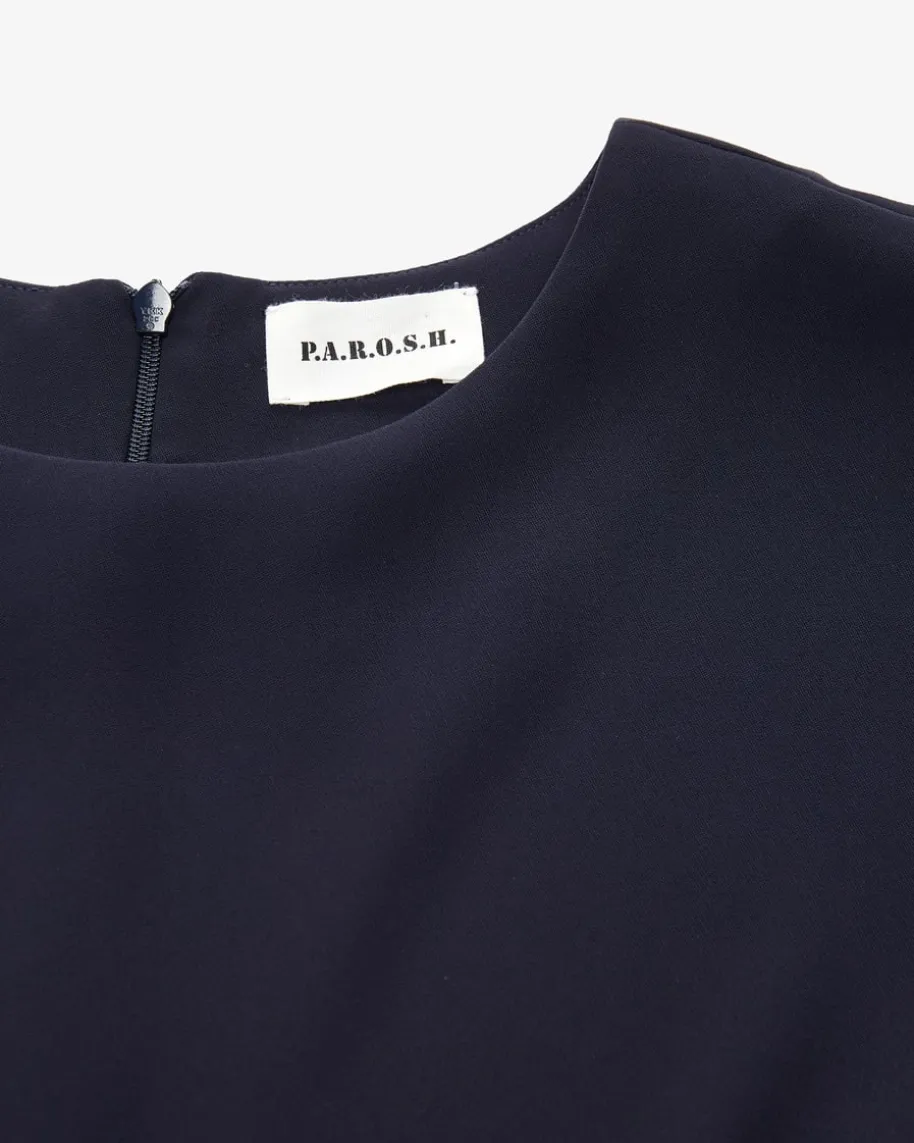 Poker25 Blusenkleid für Damen von Parosh in Navy. Das Modell besticht dankfließender Material-Qualität mit angenehmem Tragekomfort, während die weite,aber antaillierte Silhouette mit überschnittenen Schultern einen stilvollen Lookfür feminine Office-Looks kreiert.