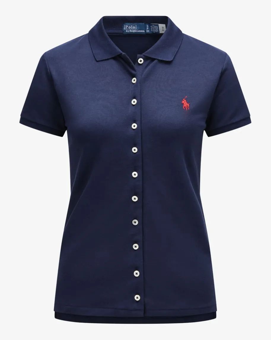 Poloshirt für Damen von Polo Ralph Lauren in Navy. Ein Klassiker mitraffiniertem Twist. Das schmale Modell zeichnet sich durch die elastischeBaumwoll-Verarbeitung in Piqué-Qualität aus, während die durchgehendeKnopfleiste den zeitlosen Polo-Look modern inszeniert. Den letzten Schliffverleiht die charakteristische Reiter-Stickerei auf Brusthöhe.
