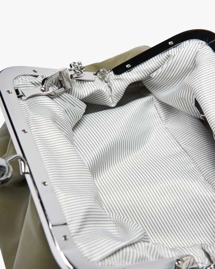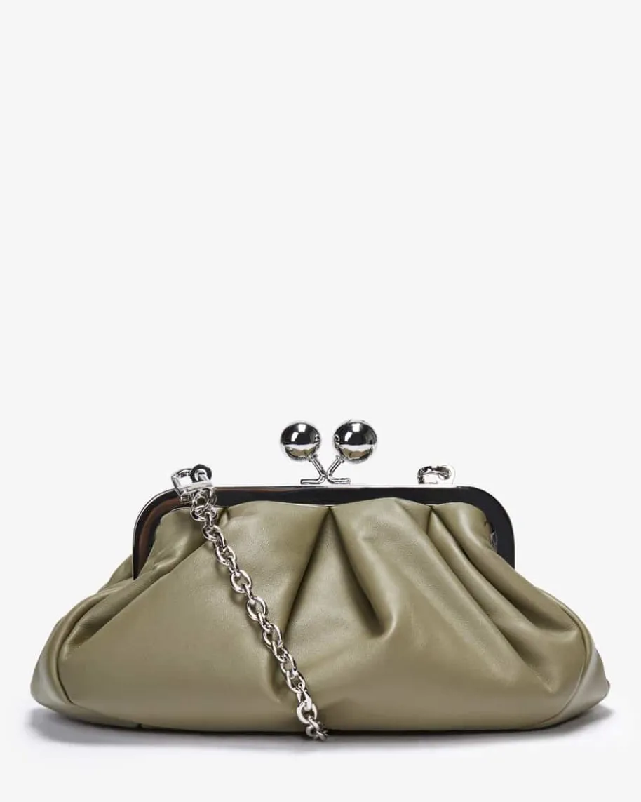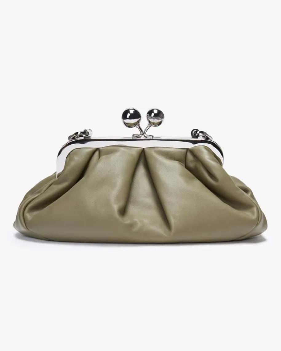 Prati Clutch für Damen von Weekend Max Mara in Grün. Diekleine Pasticcino Bag aus ausweichem Nappa-Schafleder ist eine Super-Clutch, die deinemAlltagslook einepersönliche und faszinierende Note verleiht. DerMetallverschluss mitpersonalisierten Weekend Max Mara-Kugeln sorgen zudem fürden letzten Schliff.