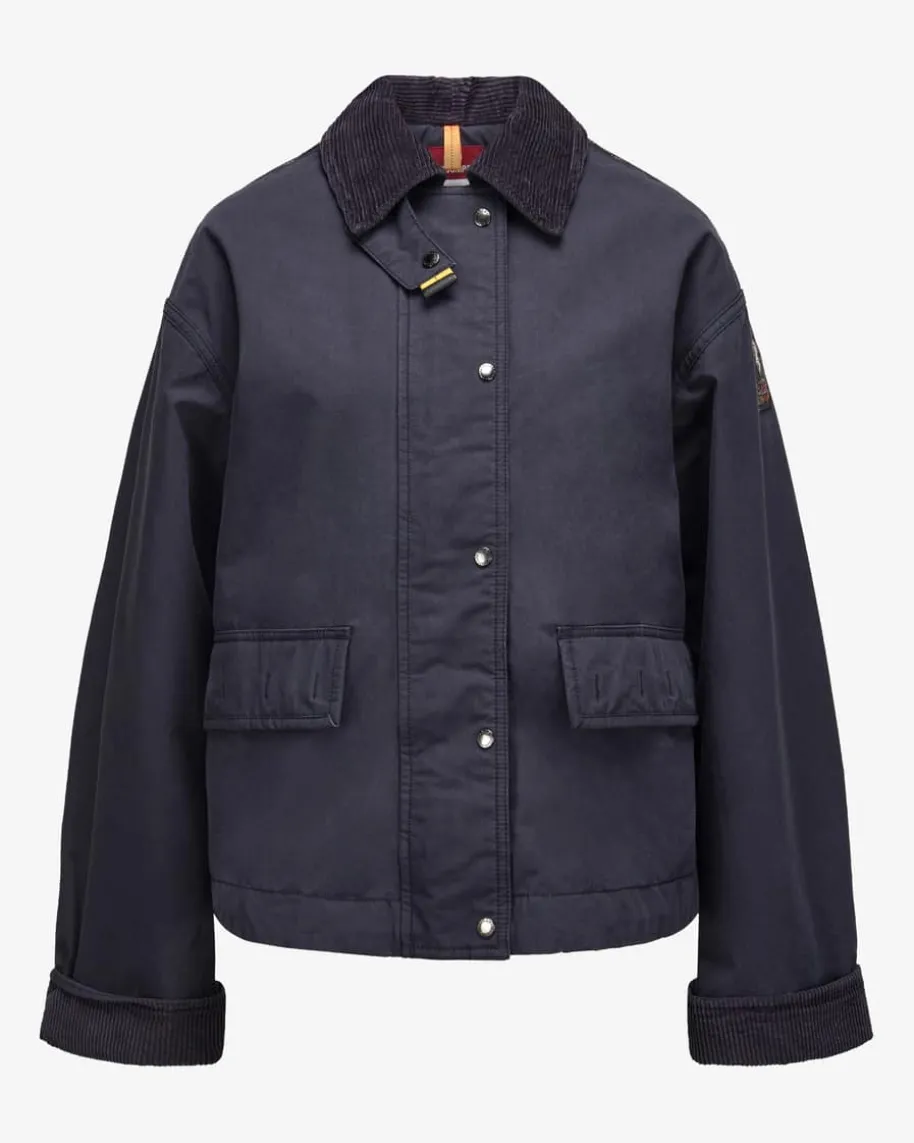 Prin Jacke für Damen von Parajumpers in Navy. Das Modell überzeugt mit glatterBaumwoll-Qualität und funktionalen Eigenschaften, die zusammen mit der weiten,kastigen Passform einen legeren Outdoor-Begleiter schaffen. Die großen Taschensowie weiche Cord-Details setzen zudem das Gesamtbild modern in Szene.