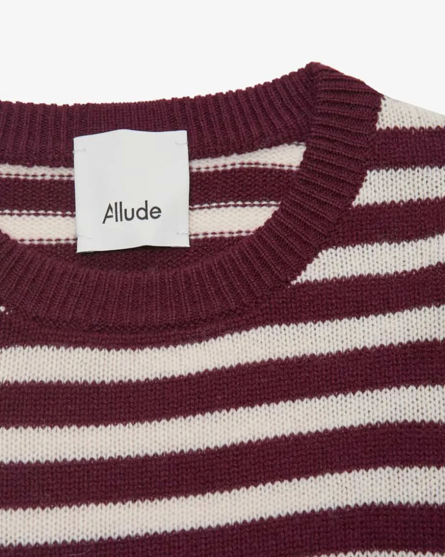 Pullover für Damen von Allude in Bordeaux und Weiß. Das Münchner UnternehmenAllude steht für Mode, die Selbstbewusstsein und zeitlose Individualitätausstrahlt. Gefertigt aus hochwertigem Schurwoll-Cashmere-Mix, besticht dasModell mit besonders weichem Griff und Streifen-Dessin. Klassische Detailsrunden den ansonsten cleanen Style feminin ab.