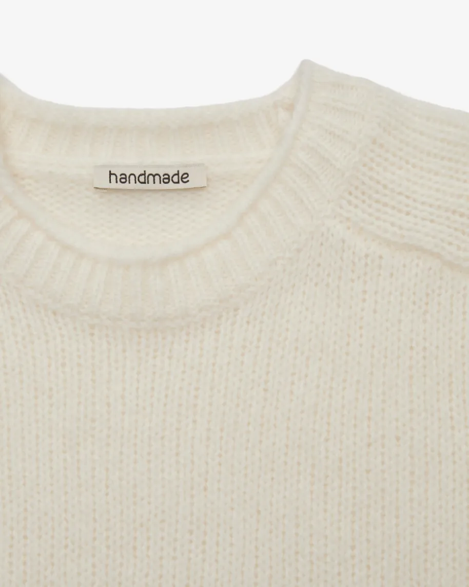 Pullover für Damen von handmade in Ecru. Dank der Woll-Cashmere-Verarbeitungpunktet das weit geschnittene Modell mit hohem Tragekomfort, während dieKombination aus Glattstrick und Bündchen im modischen Schlaufen-Dessin eineextravagante Note verleiht.