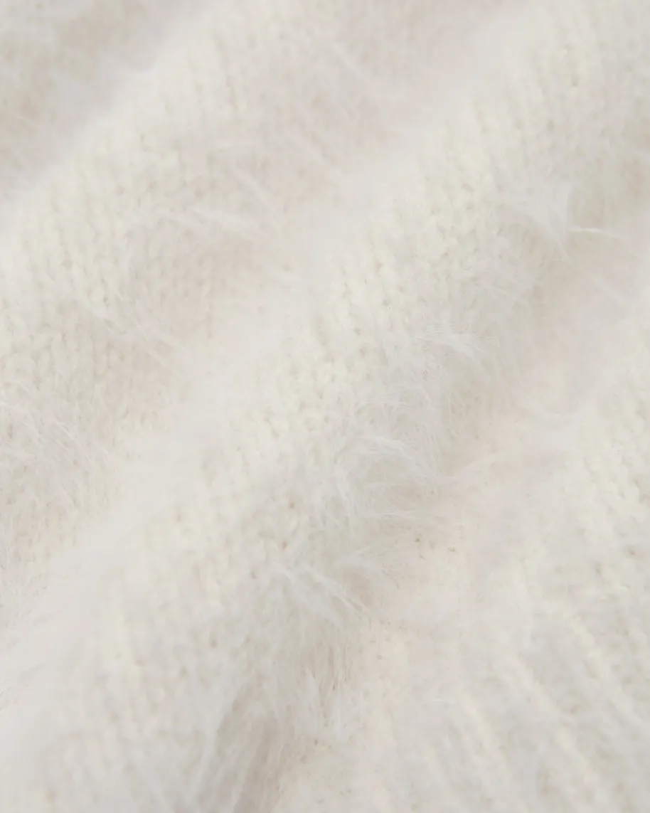 Pullover für Damen von Luisa Cerano in Creme. Das Modell aus weichem Woll-Mixpunktet dank der haarigen Aufmachung als modischer Favorit, während die legereSchnittführung mit markanten Rippstrick-Details einen komfortablen Herbst-Lookschafft.