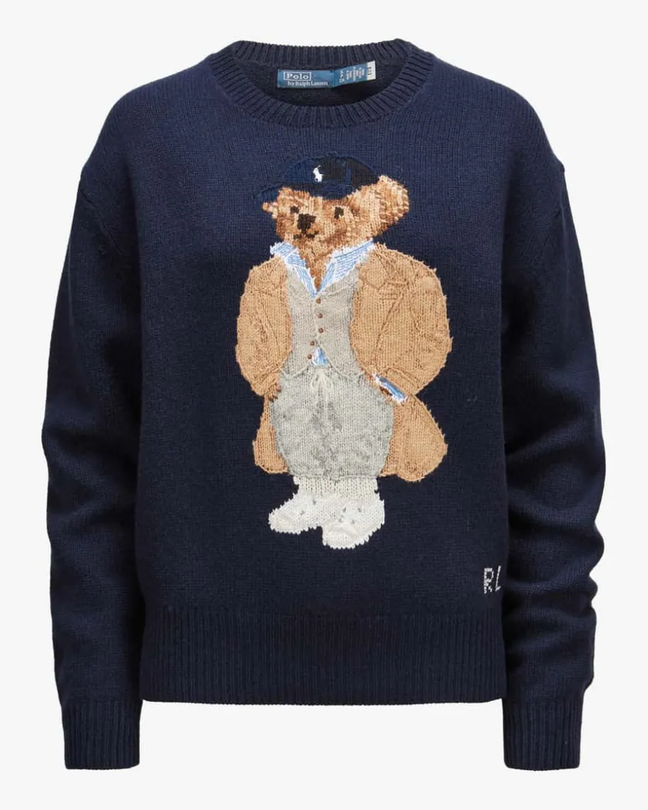 Pullover für Damen von Polo Ralph Lauren in Navy, Beige und Grau. Die charmante,labeltypische Bären-Intarsie sowie die weite Passform schaffen einen modisch-legeren Favoriten, während der weiche Woll-Cashmere-Mix angenehme Tragemomenteverspricht.