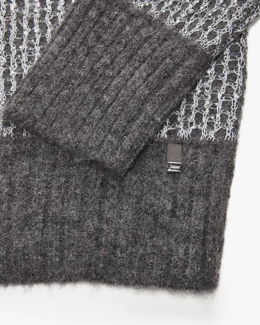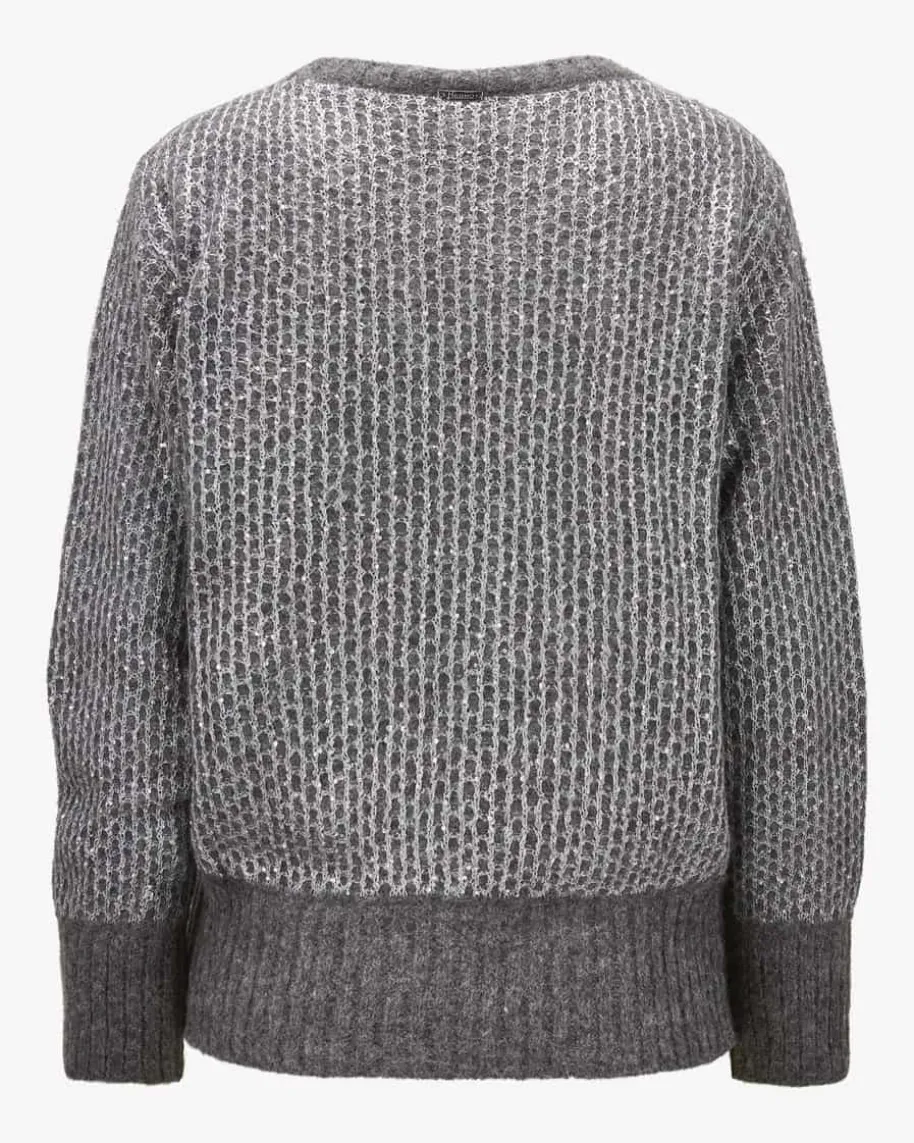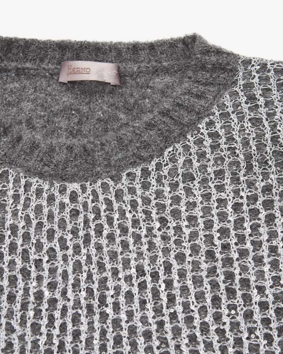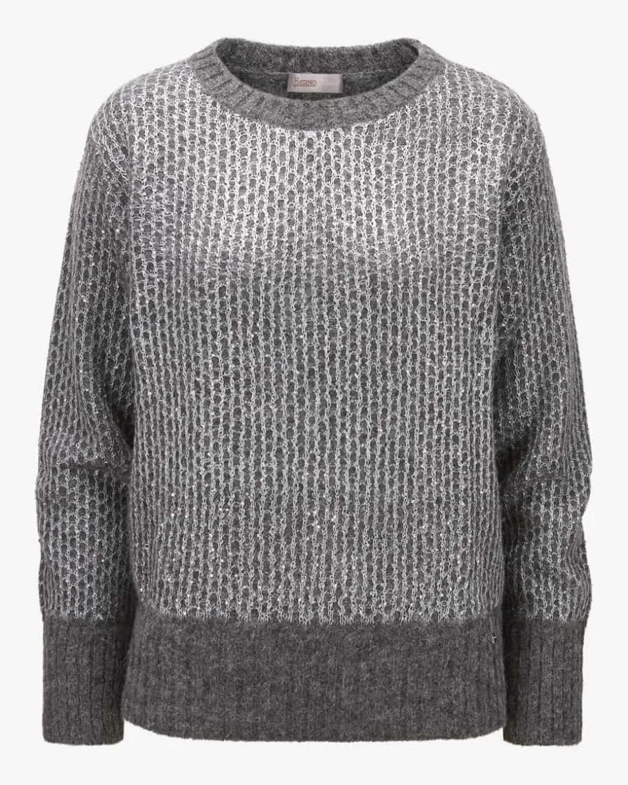 Pullover für Damen von Herno in Anthrazit und Silber. Das Modell begeistert mitedel schimmernder Pailletten-Strick-Verarbeitung und legerer Passform mitüberschnittenen Schultern. – Ein Hingucker für modische Looks. Der hochwertigeAlpaka-Woll-Mix überzeugt mit besonders weichem Griff und rundet den Styleharmonisch ab.