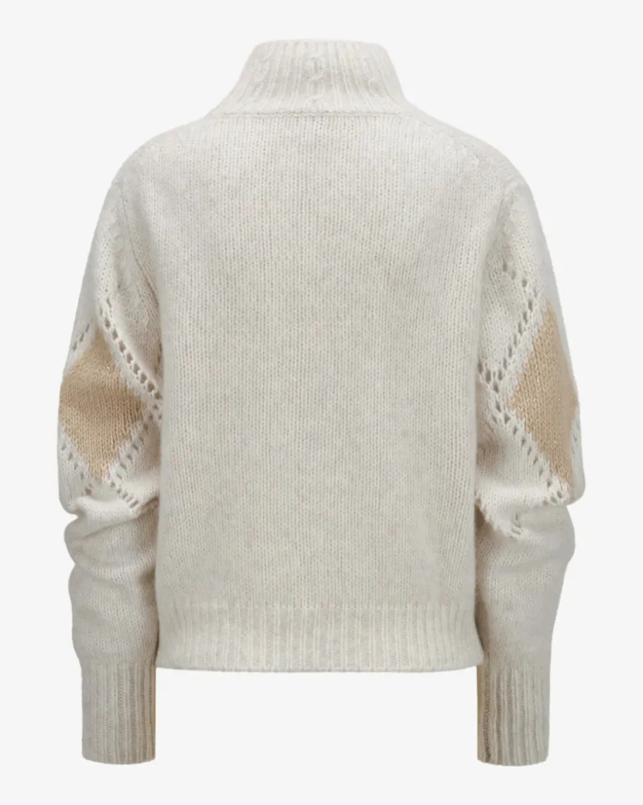 Pullover für Damen von Hemisphere in Ecru und Camel. Die deutsche Marke stehtfürluxuriöse Strick- und Kaschmirteile mit Fokus auf Qualität, Weichheit undzeitlose Farben. Auch dieses Modell aus hochwertigem Cashmere-Mix überzeugt mitangenehm-weicher Haptik, während das Rauten-Strick-Design und die Glitzerfaserneinenzeitlos-modernen Begleiter für die kalte Jahreszeit schaffen.