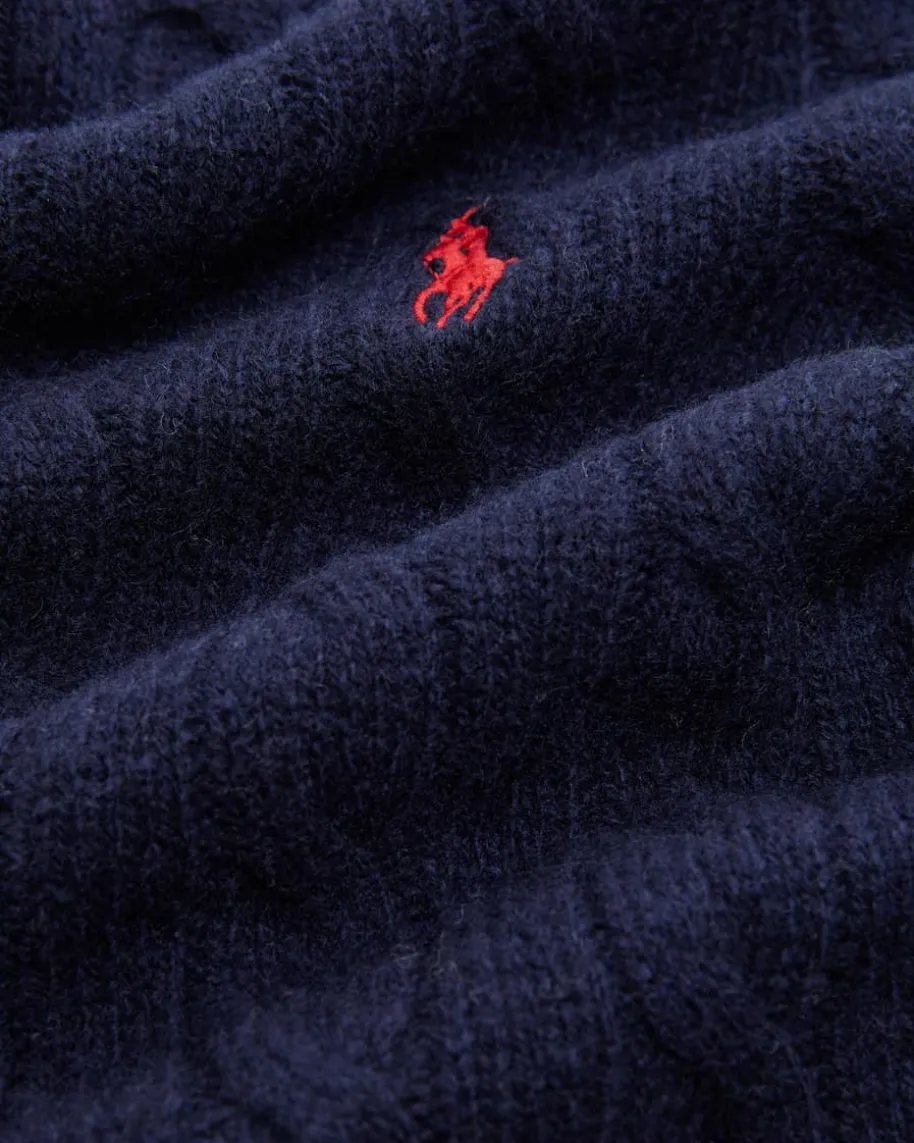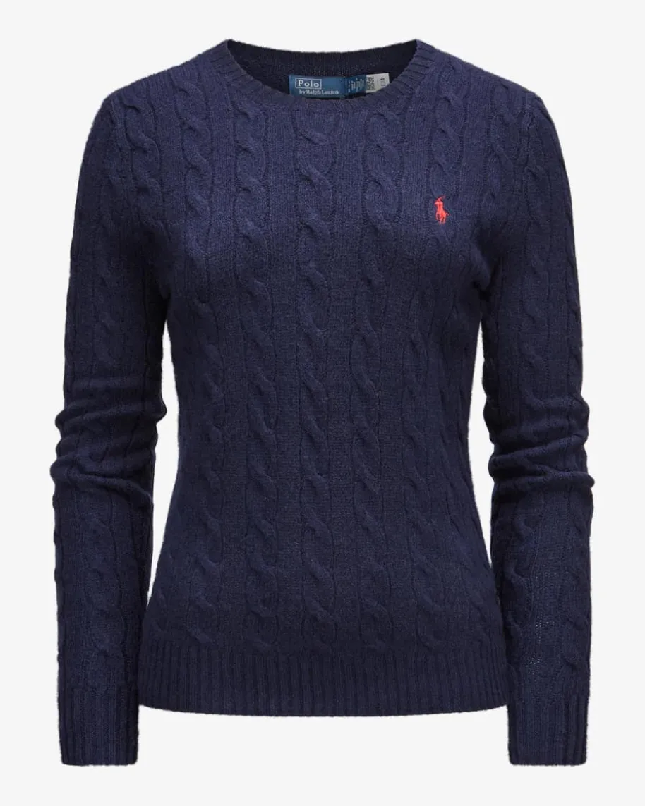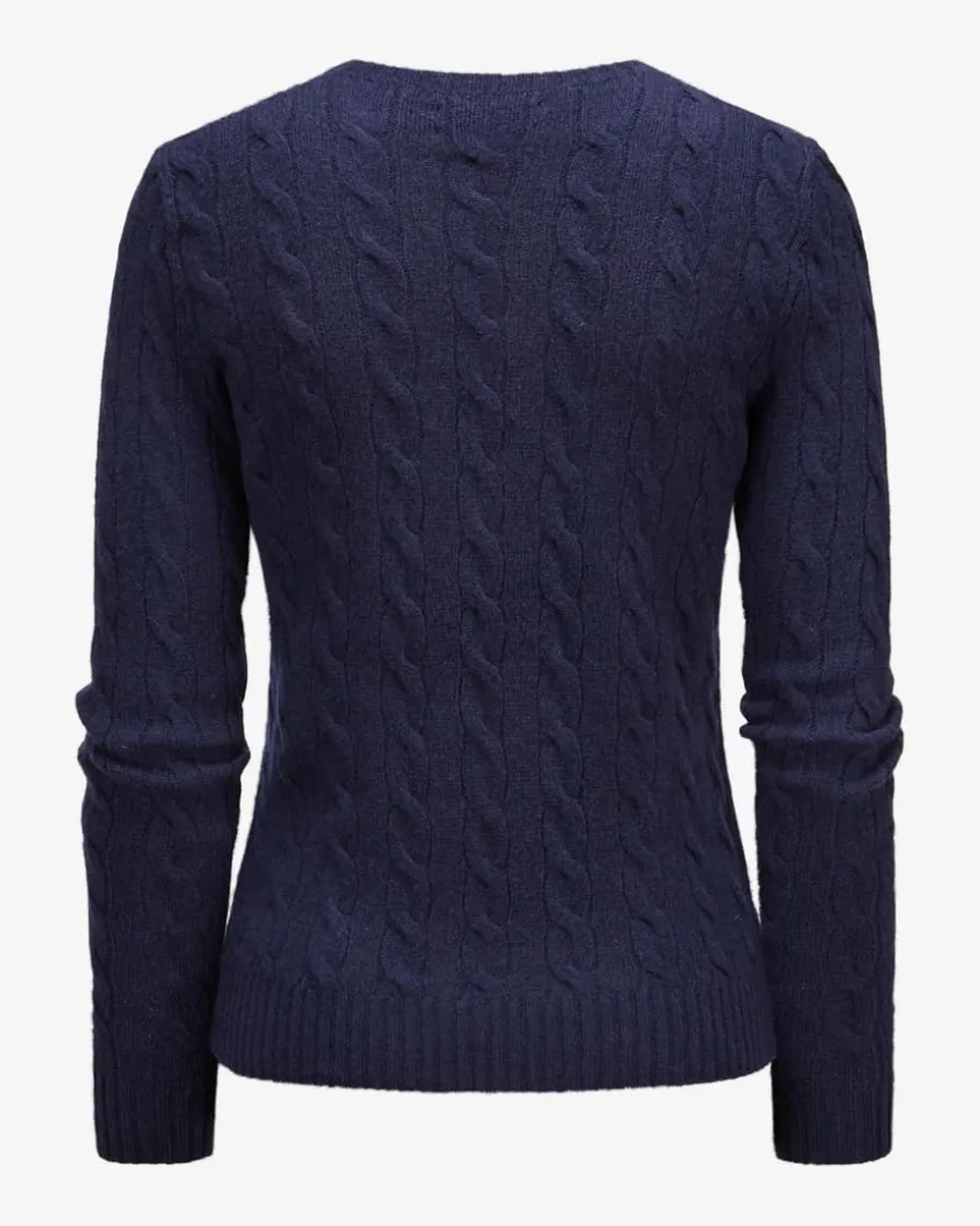 Pullover für Damen von Polo Ralph Lauren in Navy. Das Modell begeistert durchden besonders weichen Wolle-Cashmere-Mix mit hohem Tragekomfort. Stilvollabgerundet wird das Design durch die kontrastierende Logo-Stickerei auf derBrust sowie das klassische Zopf-Strickmuster.