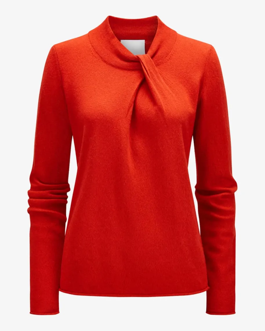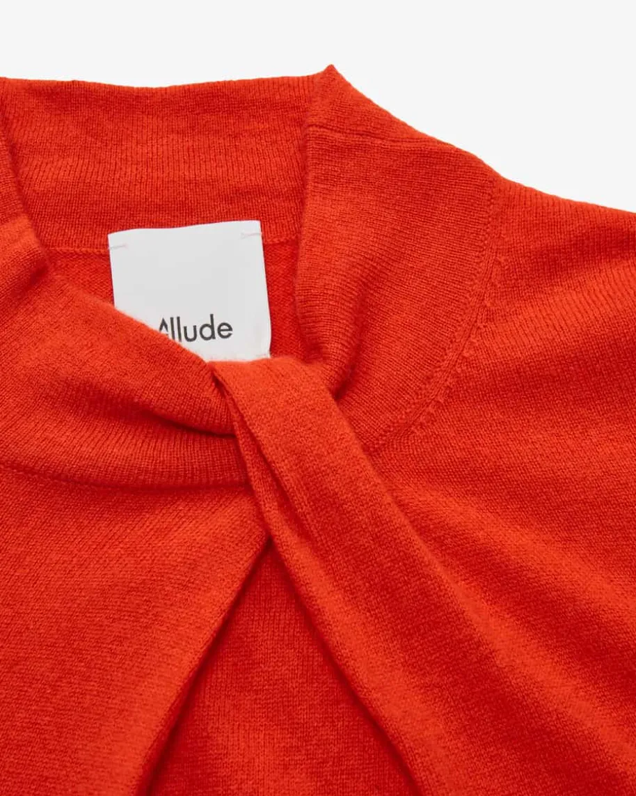 Pullover für Damen von Allude in Rot. Das Münchner Label wurde 1993 von AndreaKarg gegründet und ist bekannt für luxuriöse Strickmode aus edlem Cashmere. Auchdieses Modell überzeugt mit weichem Schurwolle-Cashmere-Mix in Feinstrick-Aufmachung, während das raffinierte Knoten-Detail am Stehkragen einen femininenLook mit dem gewissen Etwas zaubert.