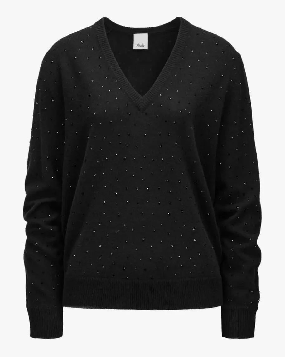 Pullover für Damen von Allude in Schwarz. Das Oversize-Modell besticht mitseiner hochwertigen, weichen Schurwoll-Verarbeitung, während changierendeSchmucksteine ein feminines Gesamtbild kreieren. – Eine modische Harmonie ausExtravaganz und Nonchalance.