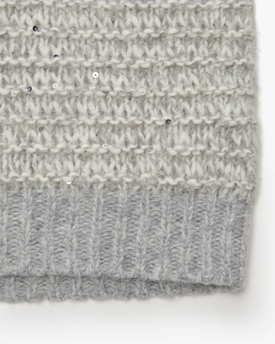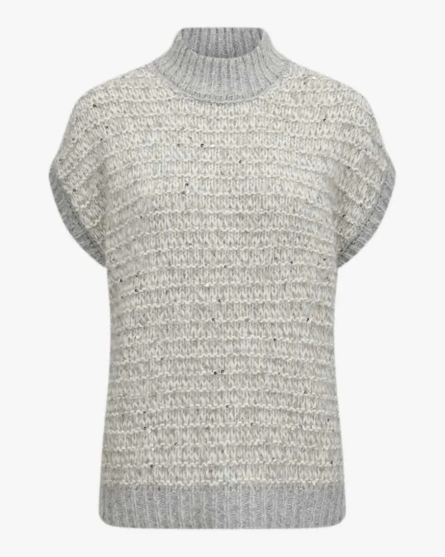 Pullunder für Damen von Peserico in Hellgrau und Off-White. Das kastige Modellaus hochwertigem Alpakawoll-Mix in weichem Grobstrick punktet dank der Melange-Optik mit changierenden Pailletten-Applikationen als modernes Highlight, währendder sonst legere Style einen idealen Layering-Favoriten für Ihre Herbst-/Winter-Garderobe kreiert.