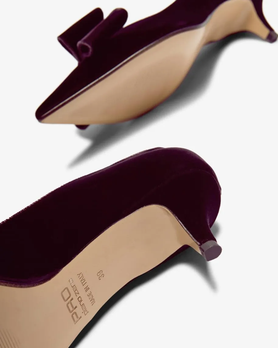 Pumps für Damen von Pao in Aubergine. Für stilvolle Abend- oder Trachten-Looks -Die edle Samt-Qualität überzeugt sowohl haptisch als auch optisch, während diemarkante Schleifen-Applikation extravagante Akzente setzt. Die spitze Formvollendet das feminine Gesamtbild gekonnt.