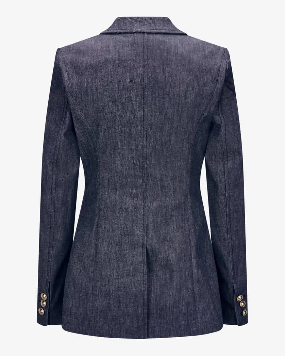 Pure Love Blazer für Damen von Dorothee Schumacher in Nachtblau. Während diemarkante Denim-Optik sowohl haptisch als auch optisch überzeugt, avanciertdieses Modell dank klassischer Details zum vielseitigen Begleiter. Diegoldfarbenen Knöpfe verleihen dem Design das gewisse Etwas und runden den Styleperfekt ab.