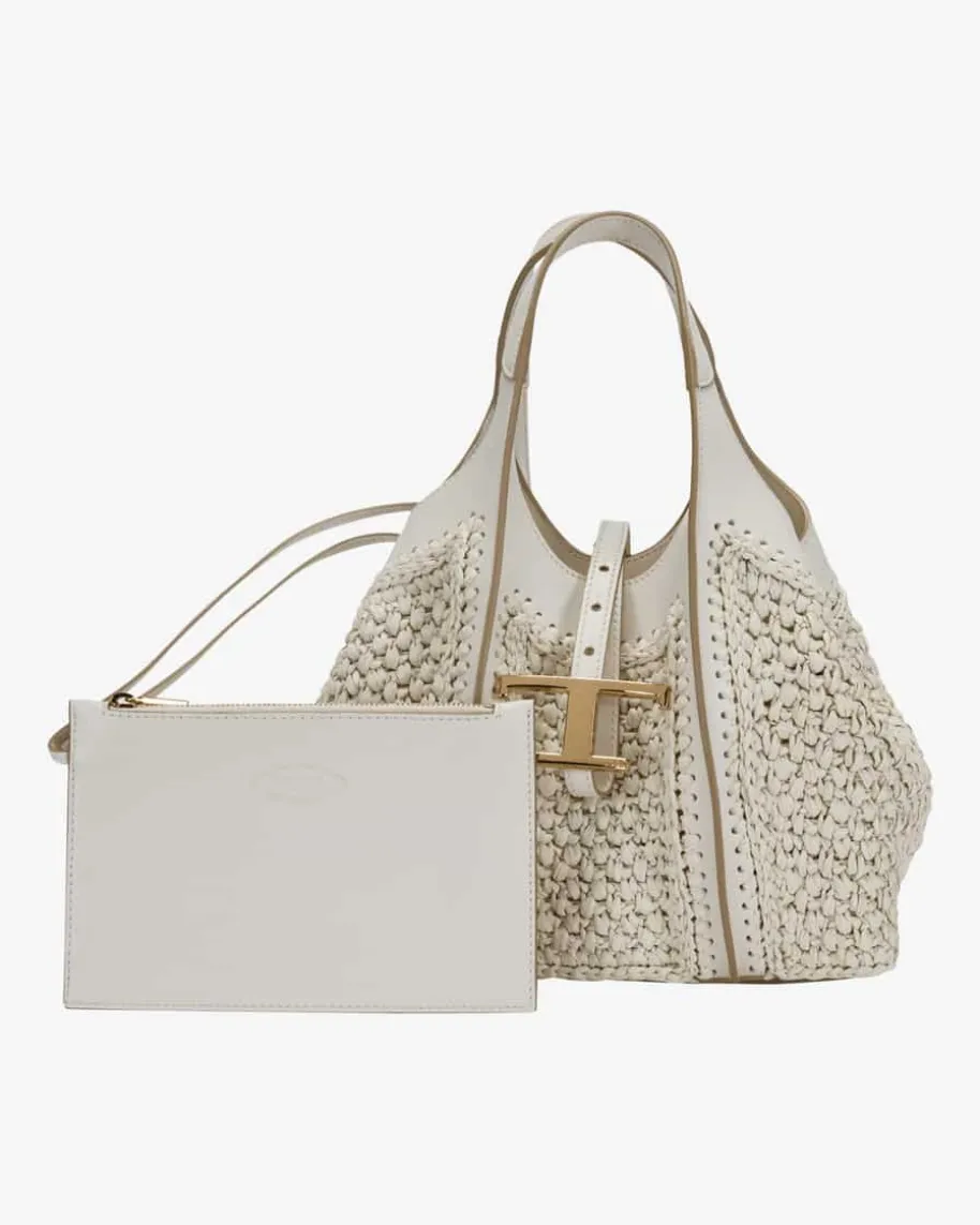 Raffiatasche für Damen von Tod’s in Creme. Das Modell mit der Kombination ausgeflochtenem Raffia und Leder besticht zusammen mit dem labeltypischen Logo-Anhänger in modischer Eleganz, während das geräumige Hauptfach sowie dasherausnehmbare Necessaire genug Stauraum für all Ihre Alltags-Essentials bietet.