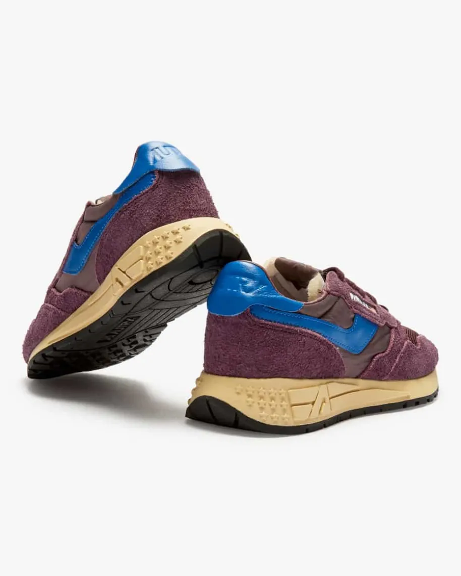 Reelwind Low Sneaker für Damen von Autry in Aubergine und Royal. Das 1982 inDallas gegründete Label etablierte sich zu einem der beliebtesten Sneaker-Markender 1980er Jahre und feierte 2019 sein Comeback. Auch dieses Modell aushochwertigem Veloursleder-/ Textil-Mix präsentiert sich in zeitlos-sportivemLook. Die amerikanische Flaggen-Applikation, welche als das Markenzeichen desLabels gilt, vollendet das Gesamtbild harmonisch, während die Frottee-Innenseitefür angenehmen Tragekomfort sorgt.