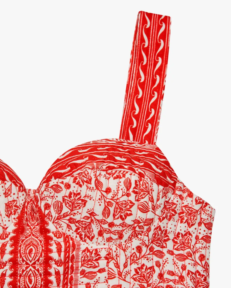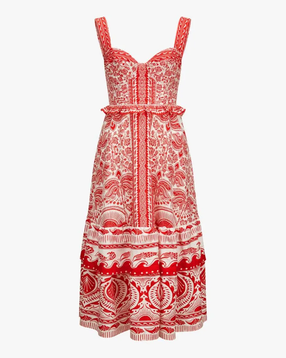 River Ride Kleid für Damen von Farm Rio in Rot und Weiß. Die brasilianischeMarke ist voller Farben, Prints und Lebensfreude. Inspiriert vom tropischenLebensgefühl bringt sie positive Energie in die Modewelt. Auch dieses Modellbegeistert mit hochwertigem Leinen-Viskose-Mix und femininem Charme, welcherdank Balconette-Design und verspielten Rüschen-Details gekonnt unterstrichenwird. Der florale Ethno-Print vollendet den Boho-Look mit sommerlichem Flair.