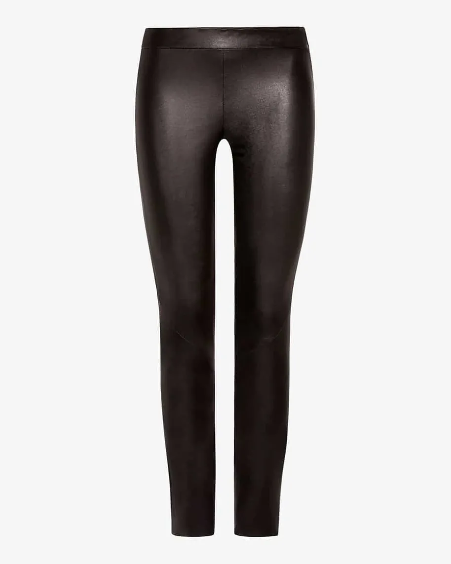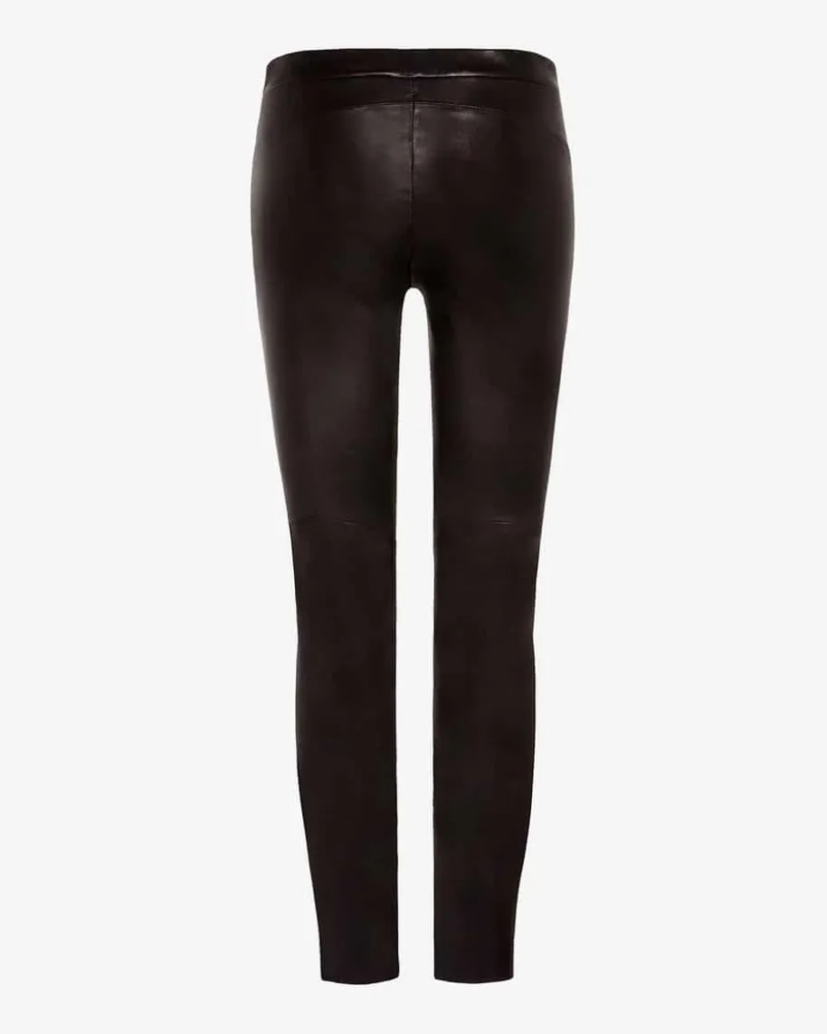 Roche Lederleggings für Damen von Arma in Schwarz. Das schmal geschnitteneModell begeistert durch die hochwertige Lammleder-Qualität. Ein seitlicherReißverschluss sowie der elastische Bund sorgen für eine feminine Passform.